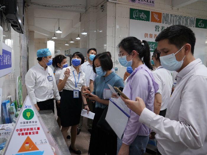 广西壮族自治区桂东人民医院院长吴家恩,党委委员、纪委书记黎祖叠,党委委员、副院长曾广吾、周正银,工会主席李培远,相关职能部门负责人,营养健康食堂创建工作专班人员陪同评审。