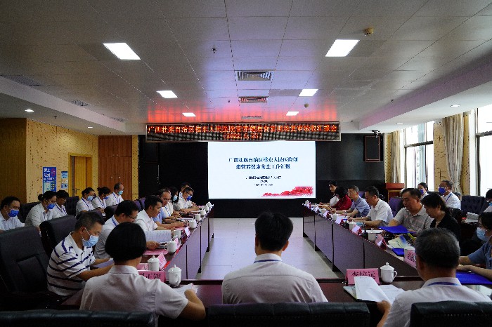 庞清介绍广西开展营养健康食堂创建项目的背景和意义,并对该院营养健康食堂创建工作的做法和取得的成效表示肯定,对该院营养健康食堂的发展工作提出具体要求。