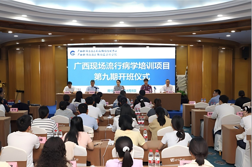 近日,广西现场流行病学培训项目(GXFETP)第九期开班仪式暨第一次核心理论培训在南宁举行。培训班特别邀请中国现场流行病学培训项目主任马会来、浙江省疾控中心疾病预防控制领域首席专家龚震宇、武汉市疾控中心公共检验检测中心主任吴晓旻3位专家授课和现场指导,自治区疾控局传染病防控处副处长李润泉、自治区疾控中心副主任朱金辉、第九期全体学员(含1名越南高平省卫生厅学员)及带教导师、广西公卫医师规培学员等90余人参加开班仪式。