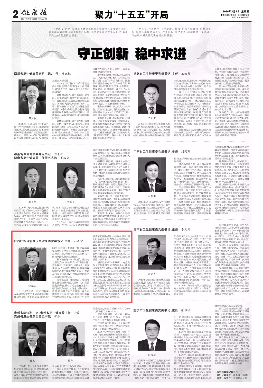 “十五五”开局之年,广西将深入学习贯彻党的二十届四中全会精神和中央经济工作会议精神,把2026年全国卫生健康工作会议部署要求贯穿于全年卫生健康事业发展全过程各方面,为谱写中国式现代化广西篇章提供坚实健康保障。