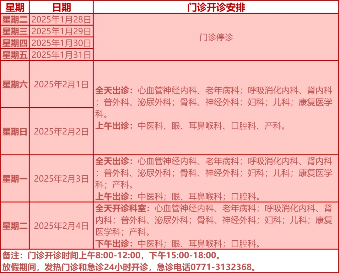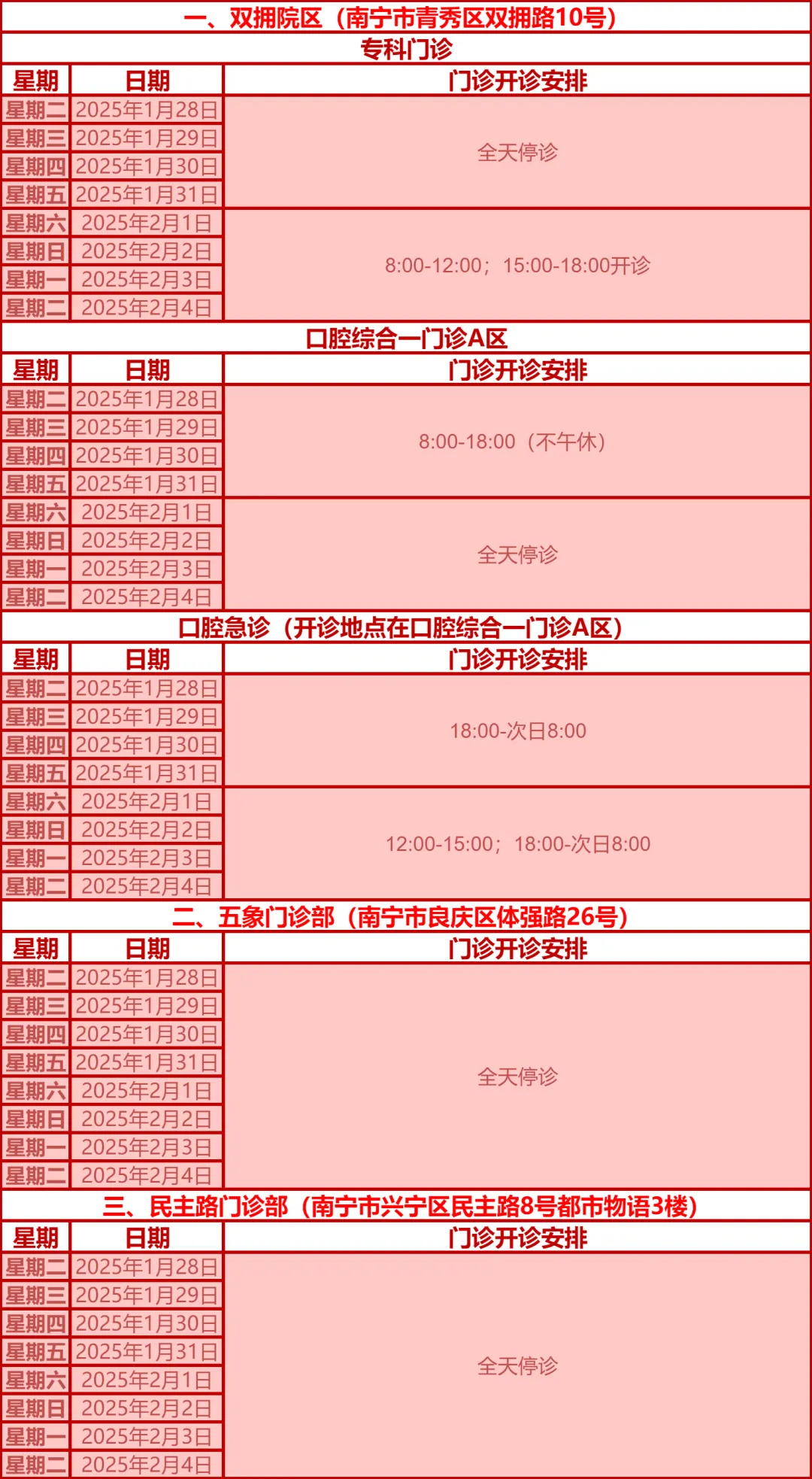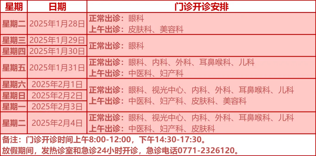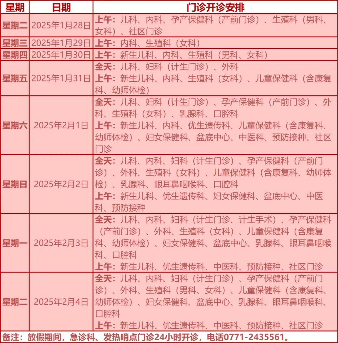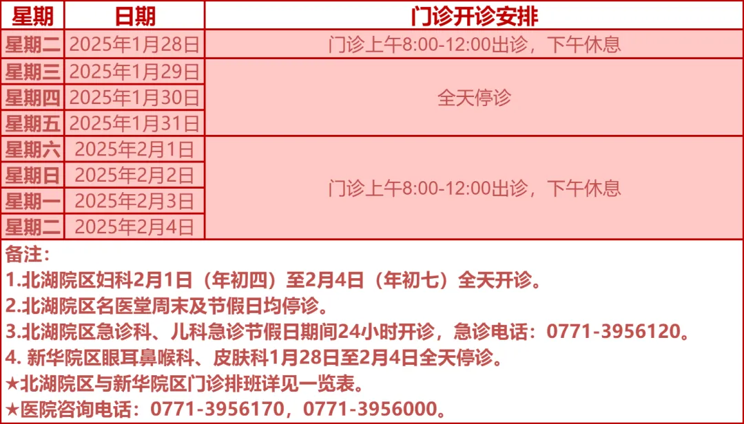 驻邕各大医院开诊安排
