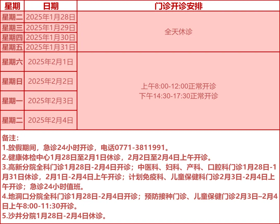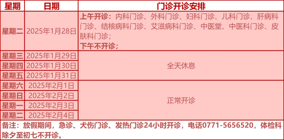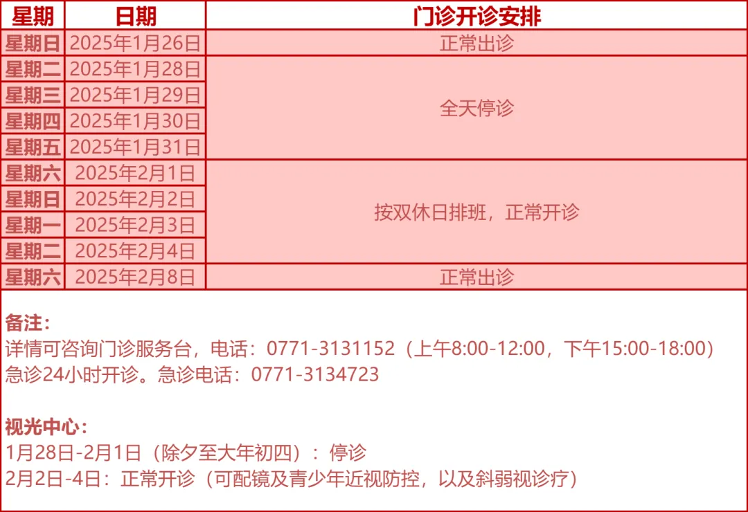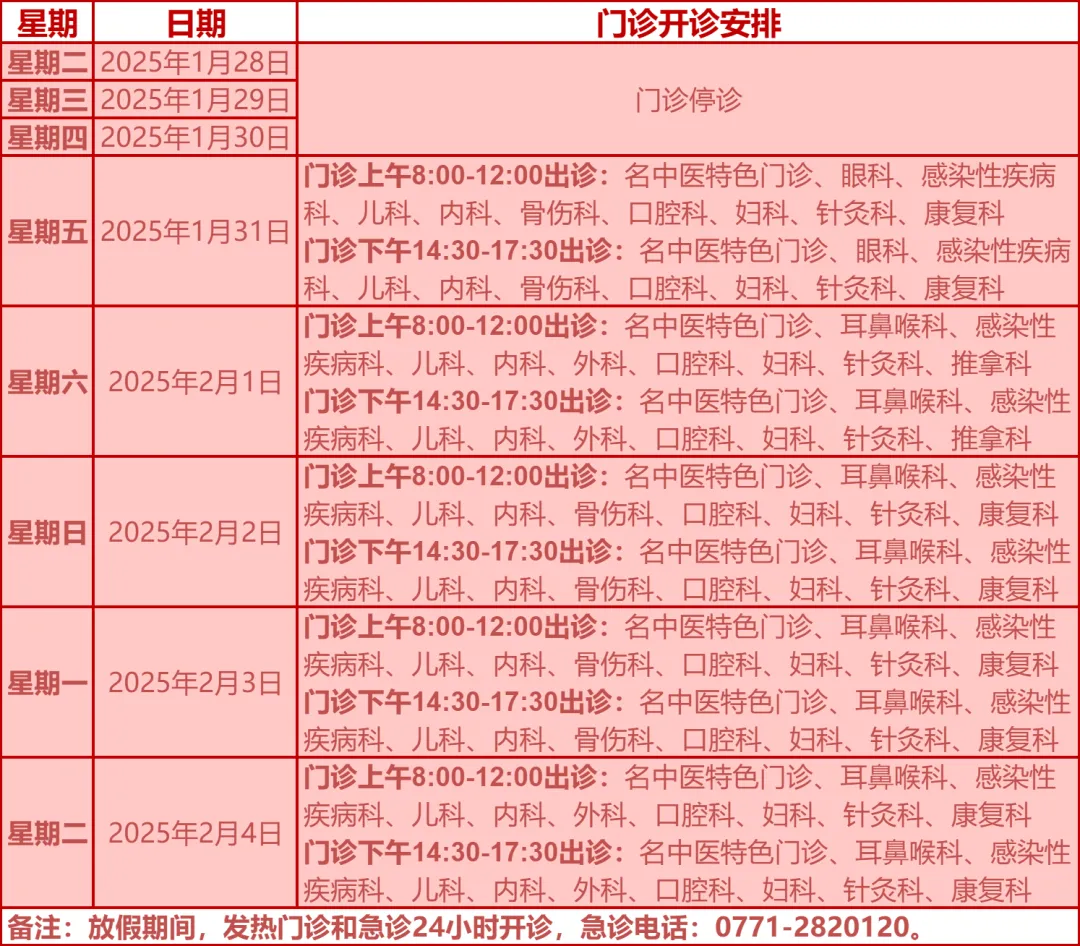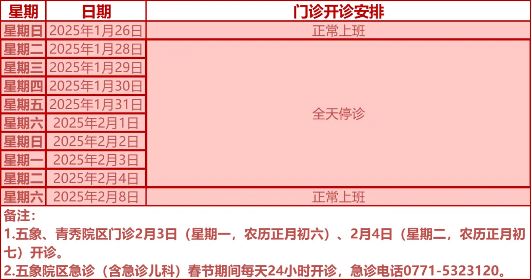 驻邕各大医院开诊安排