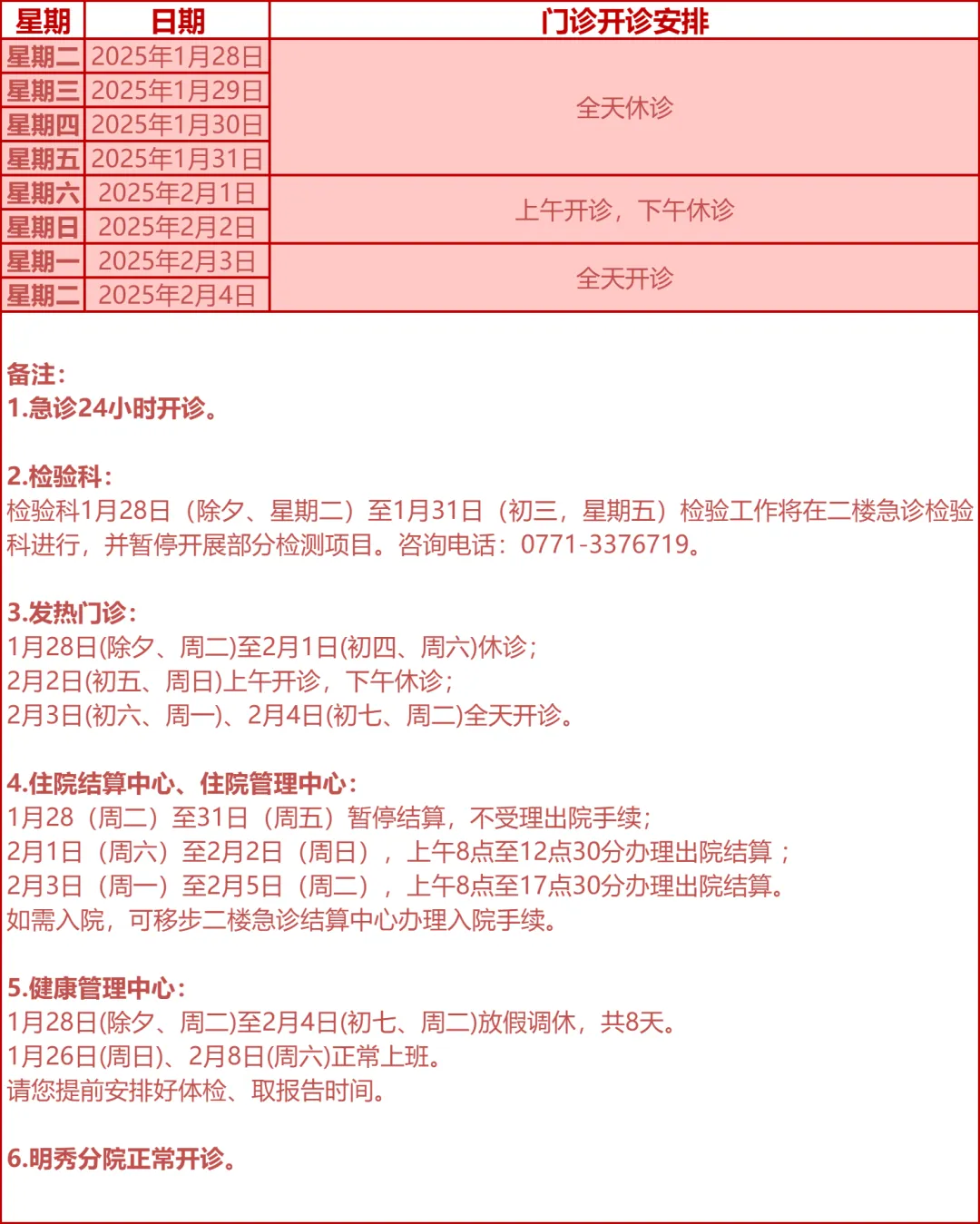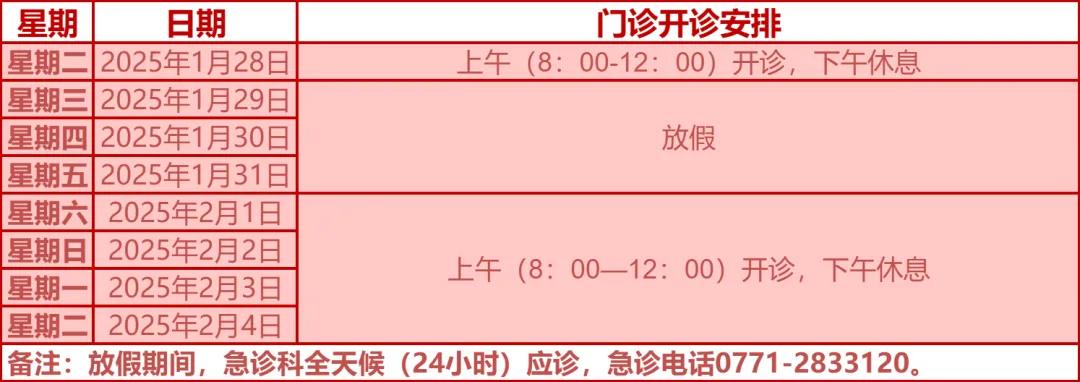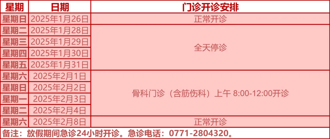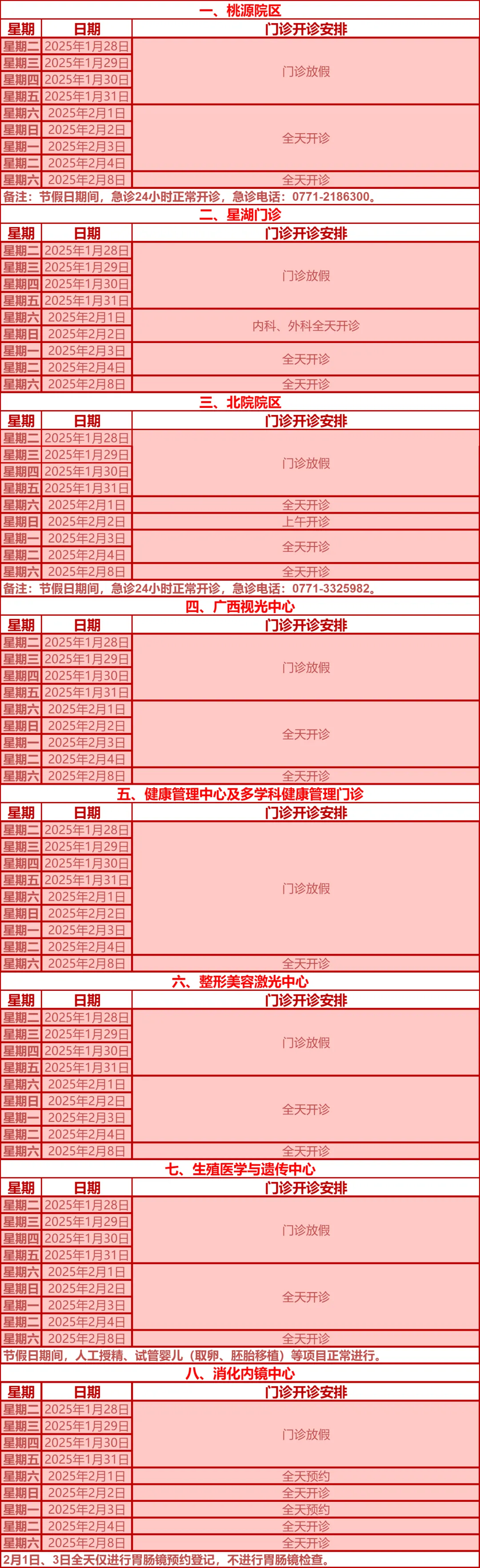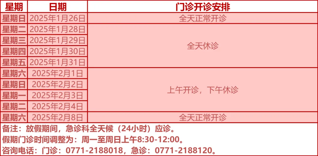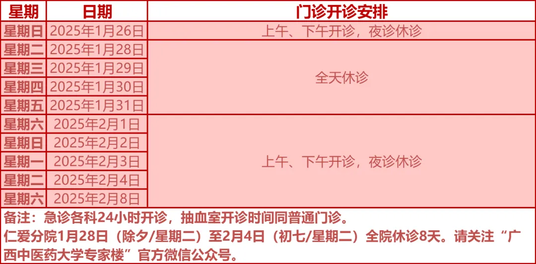 驻邕各大医院开诊安排