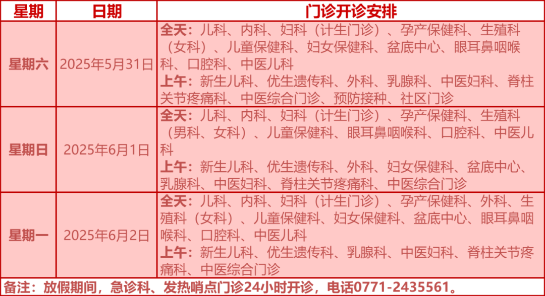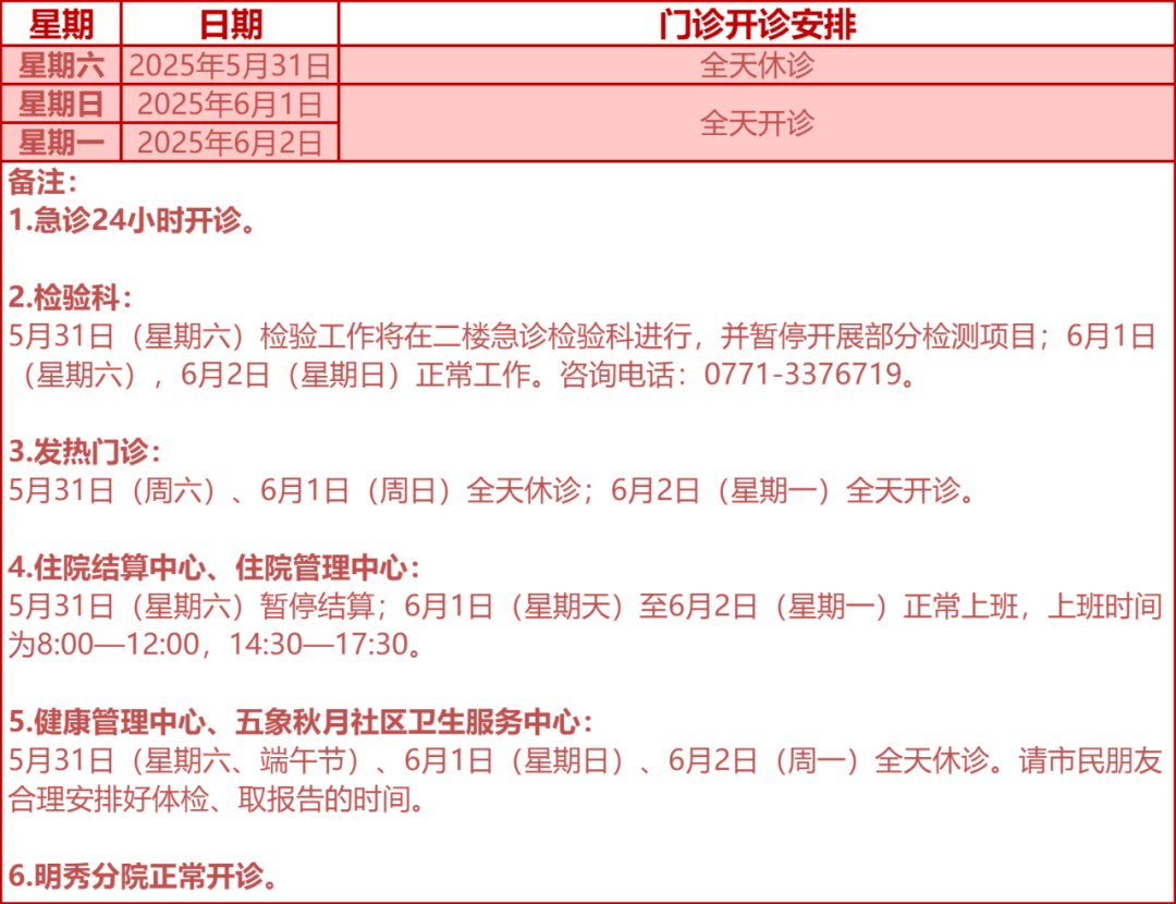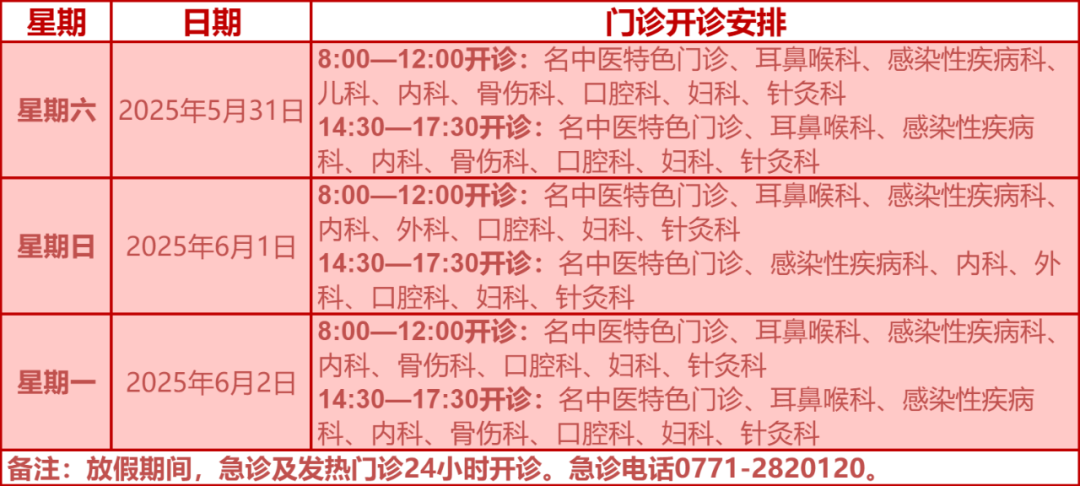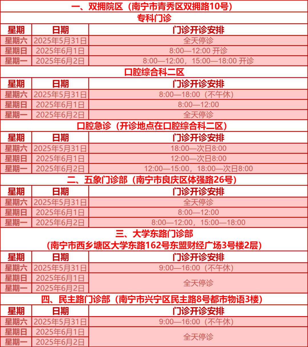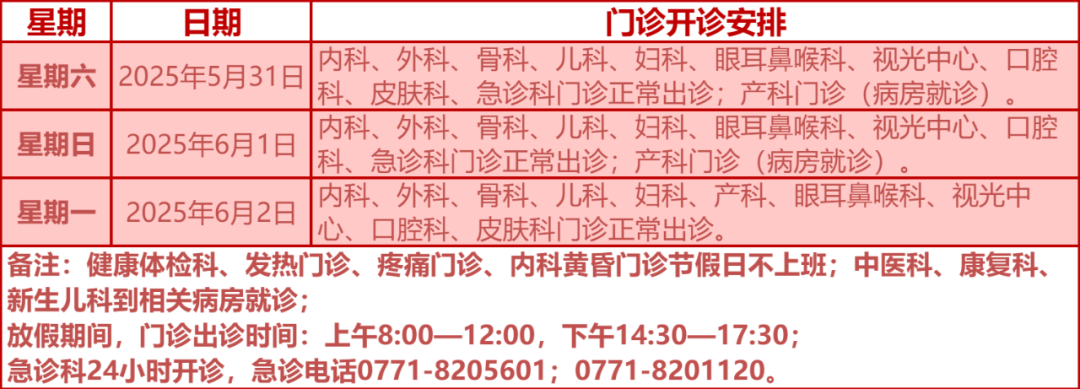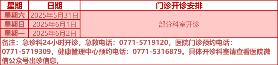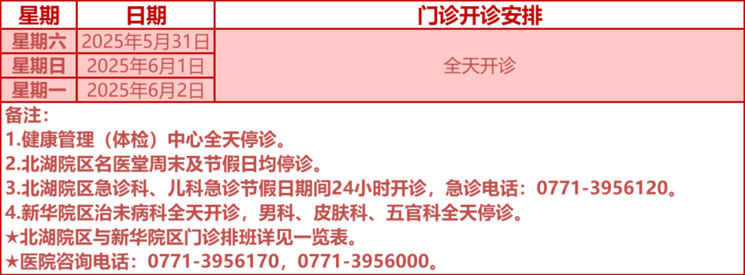 驻邕各大医院开诊安排