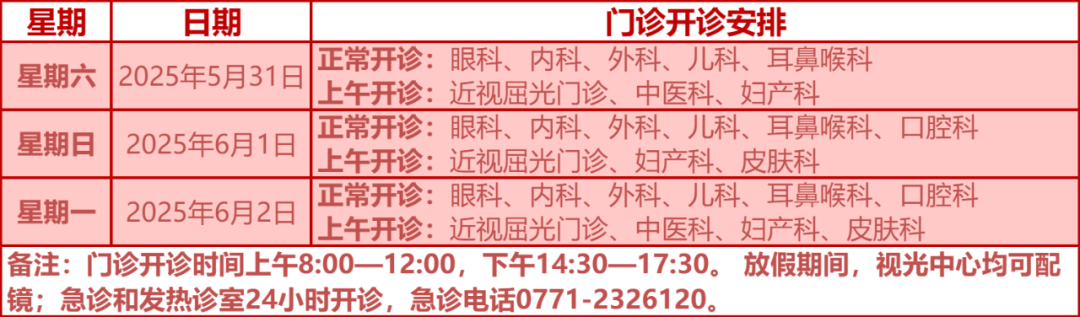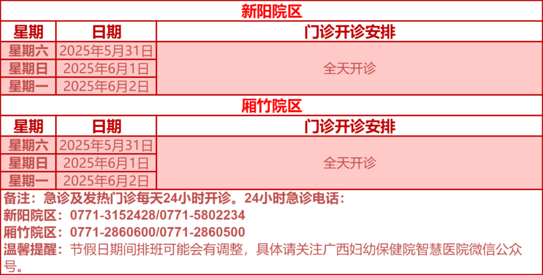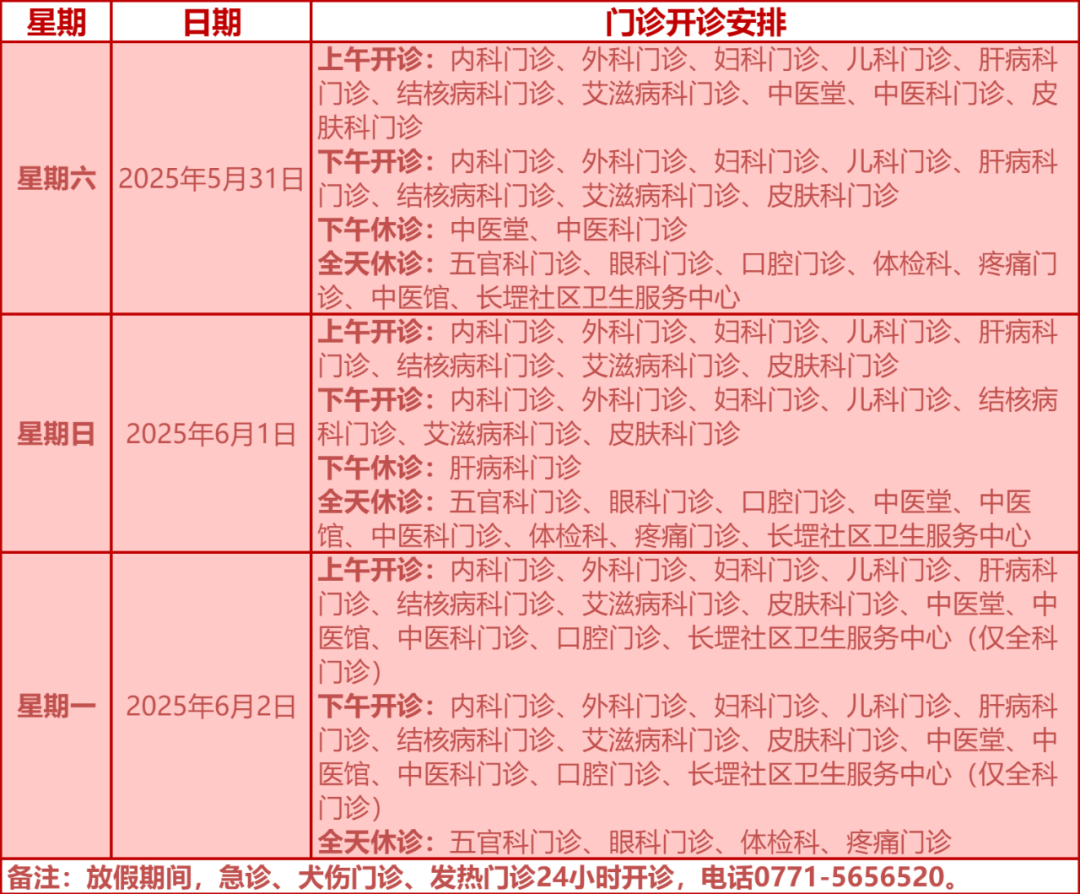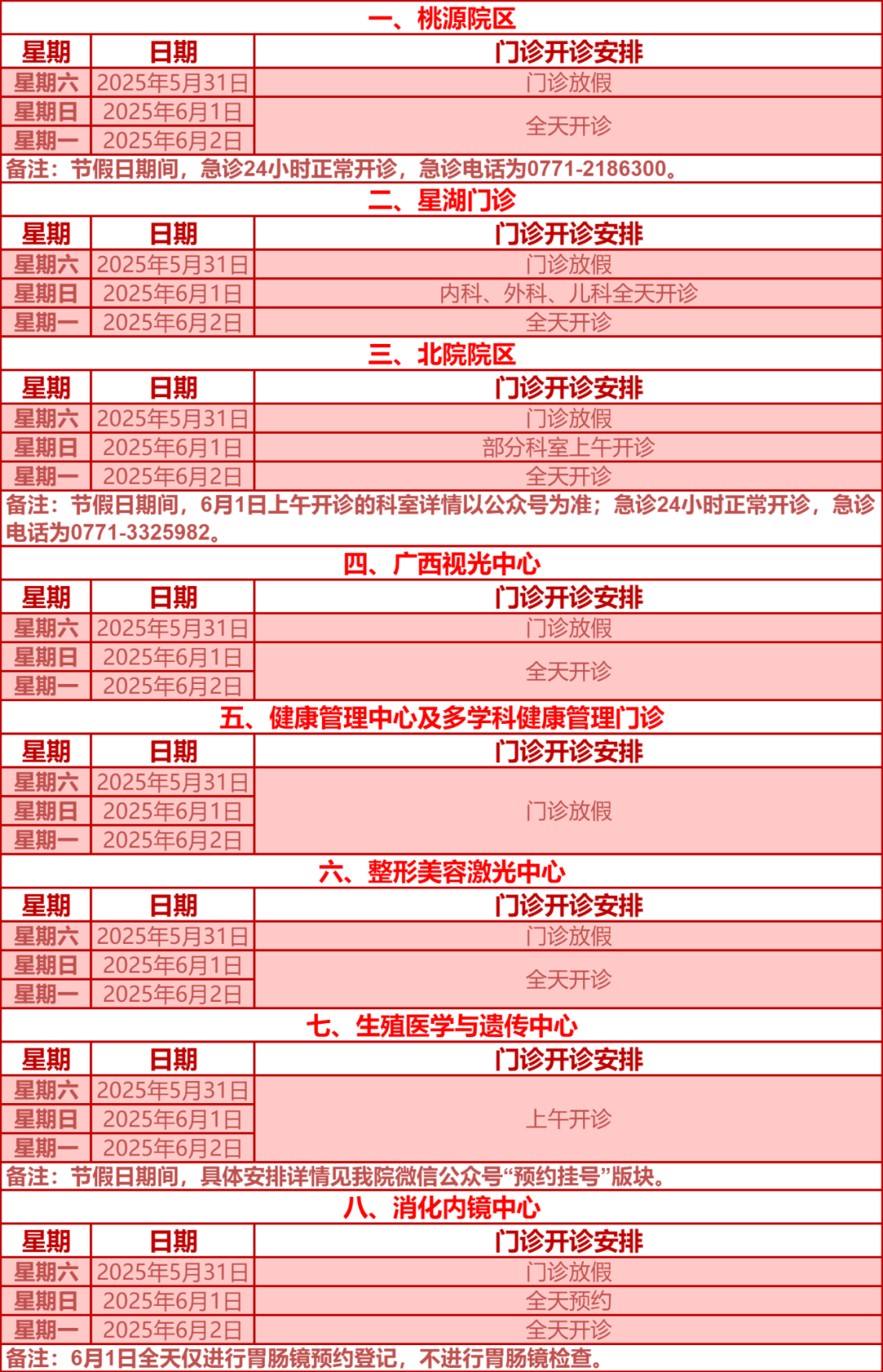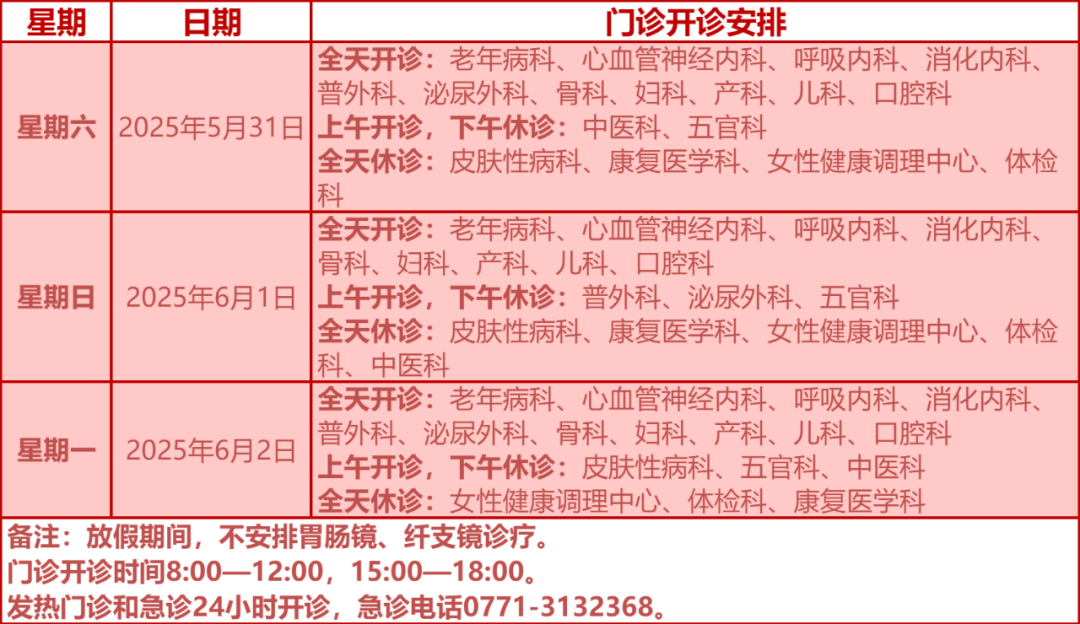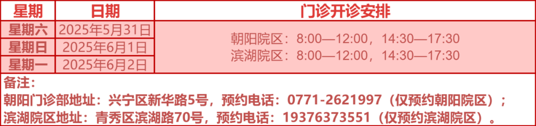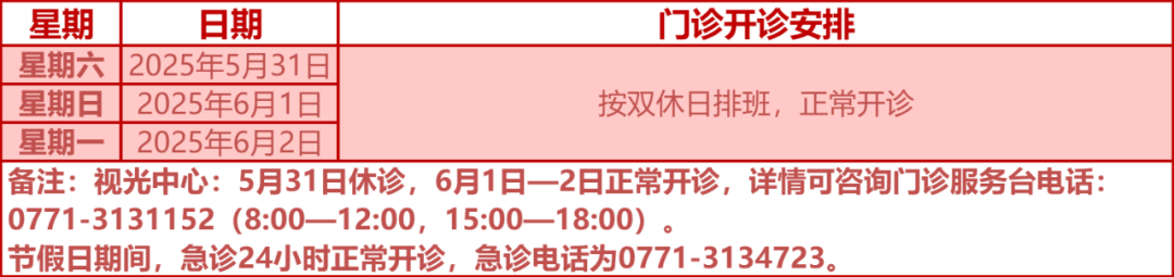 驻邕各大医院开诊安排