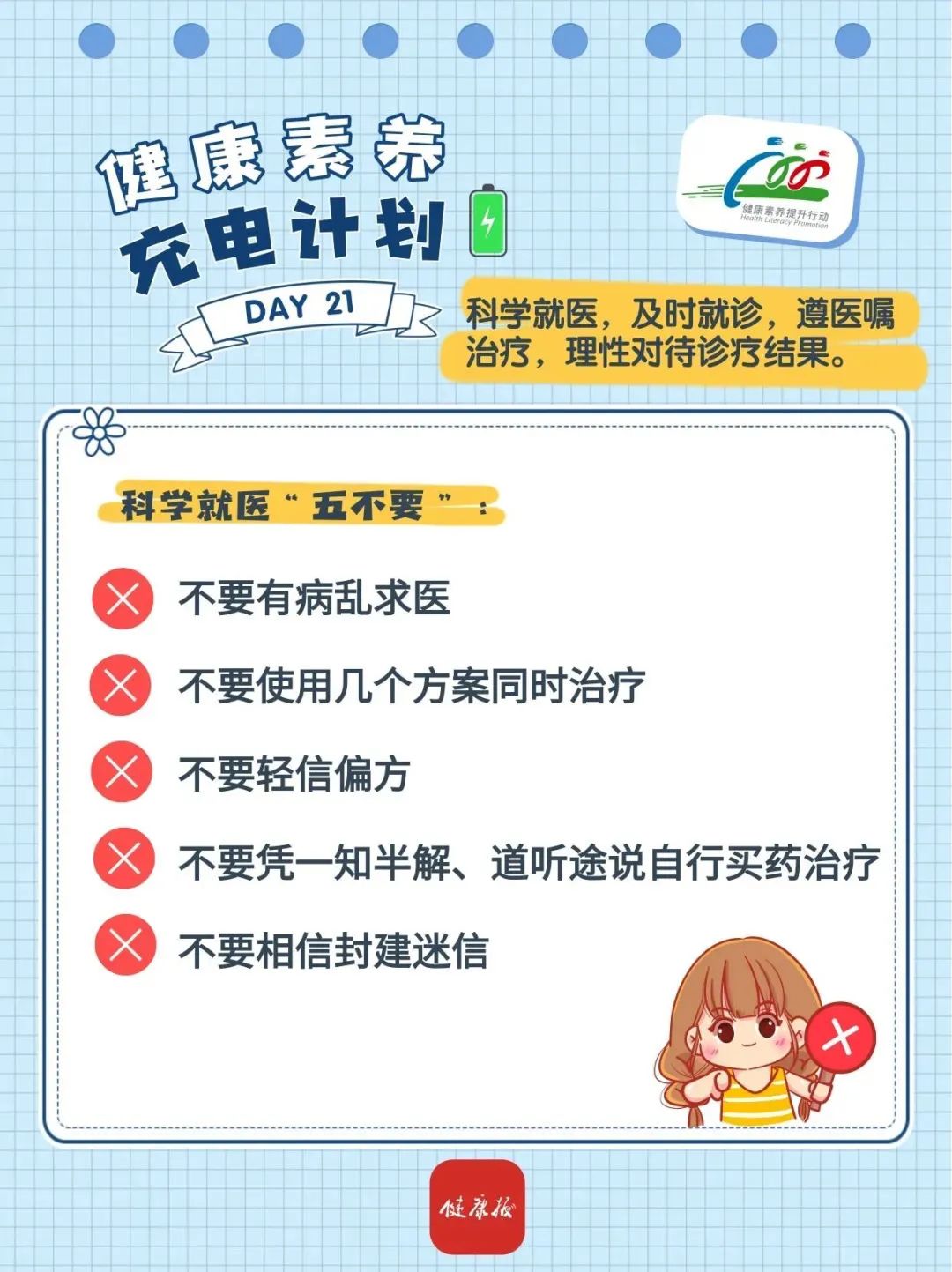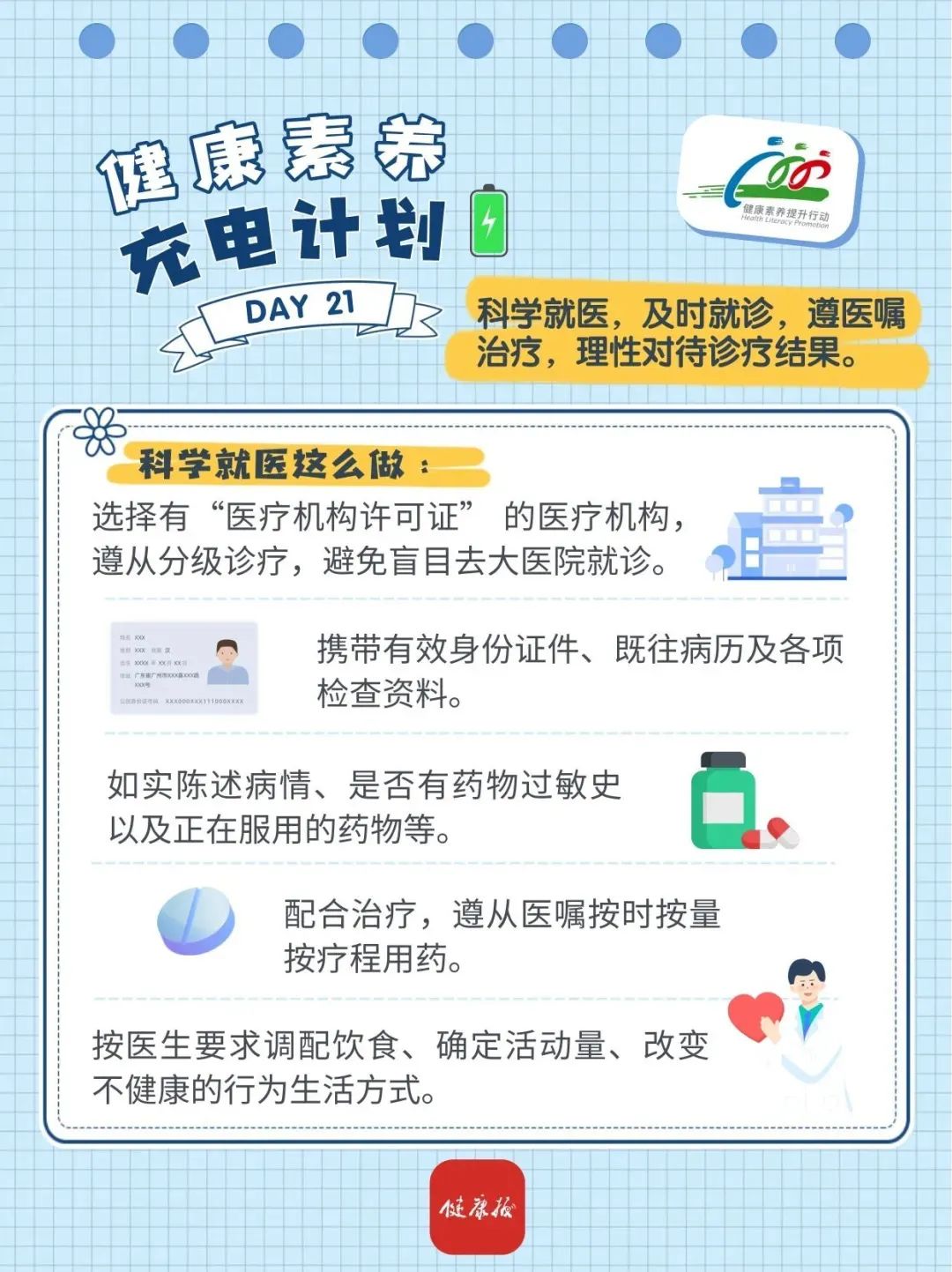 为倡导文明健康生活方式,提升居民健康素养水平,“健康八桂”微信公众号聚焦《中国公民健康素养——基本知识与技能(2024年版)》(简称“健康素养66条”)开展健康知识普及。本期内容为:科学就医怎么做?
