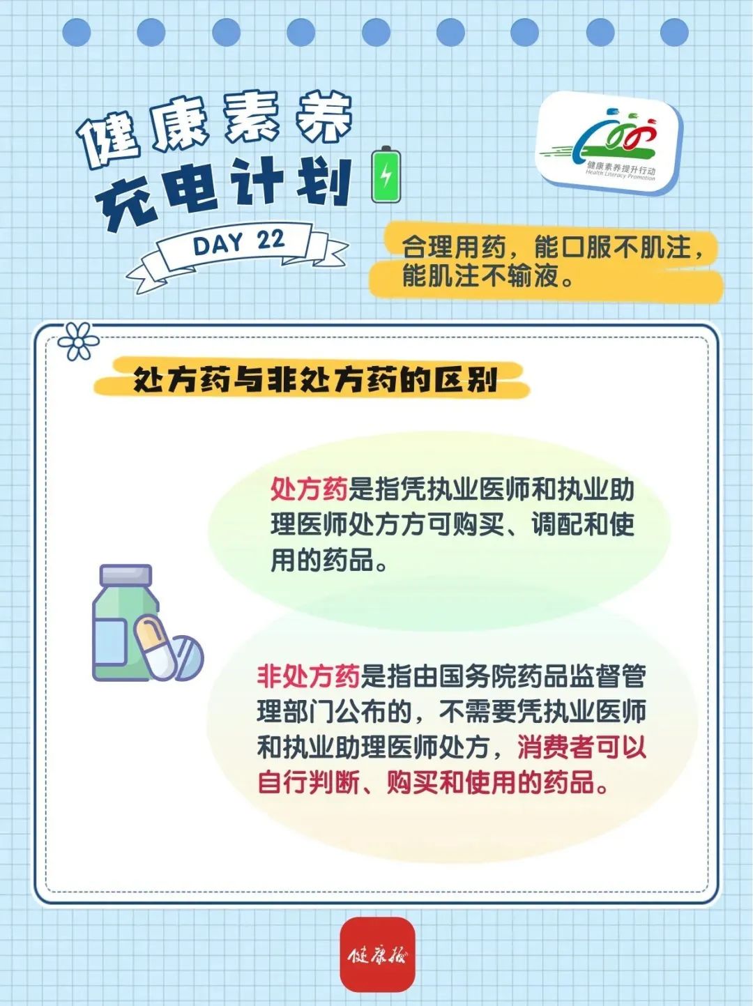 为倡导文明健康生活方式,提升居民健康素养水平,“健康八桂”微信公众号聚焦《中国公民健康素养——基本知识与技能(2024年版)》(简称“健康素养66条”)开展健康知识普及。本期内容为:合理用药应该怎么做?