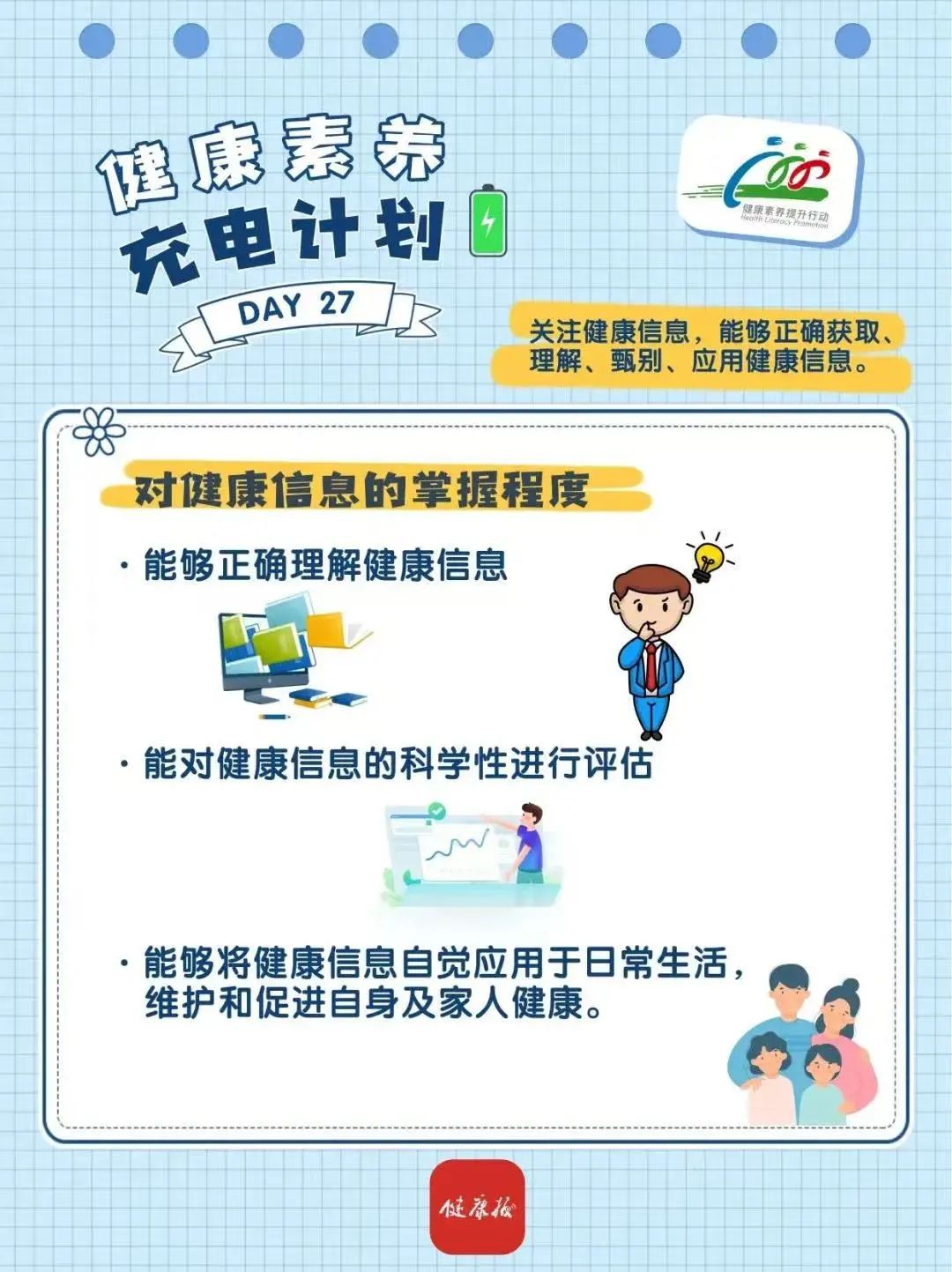 关注健康信息,能够正确获取、理解、甄别、应用健康信息。