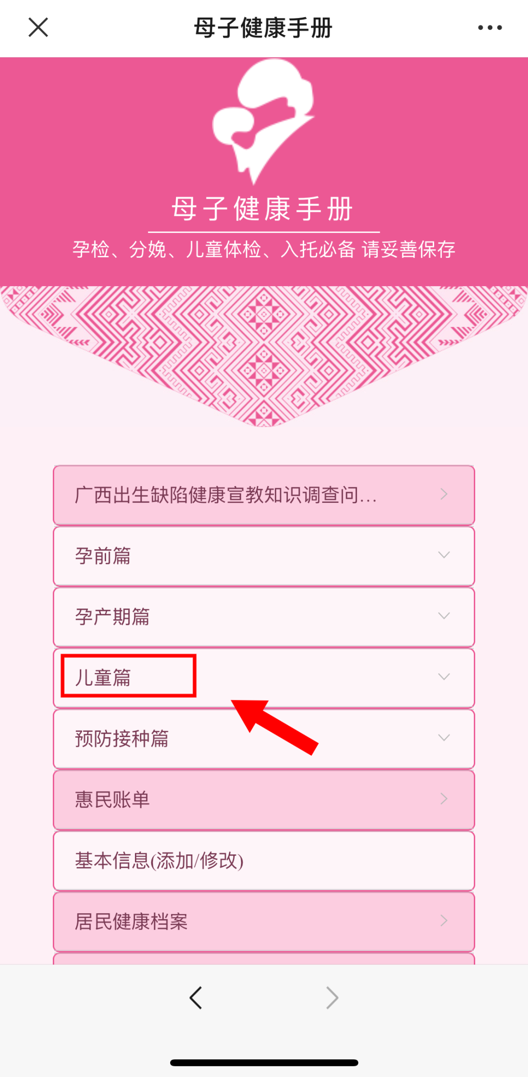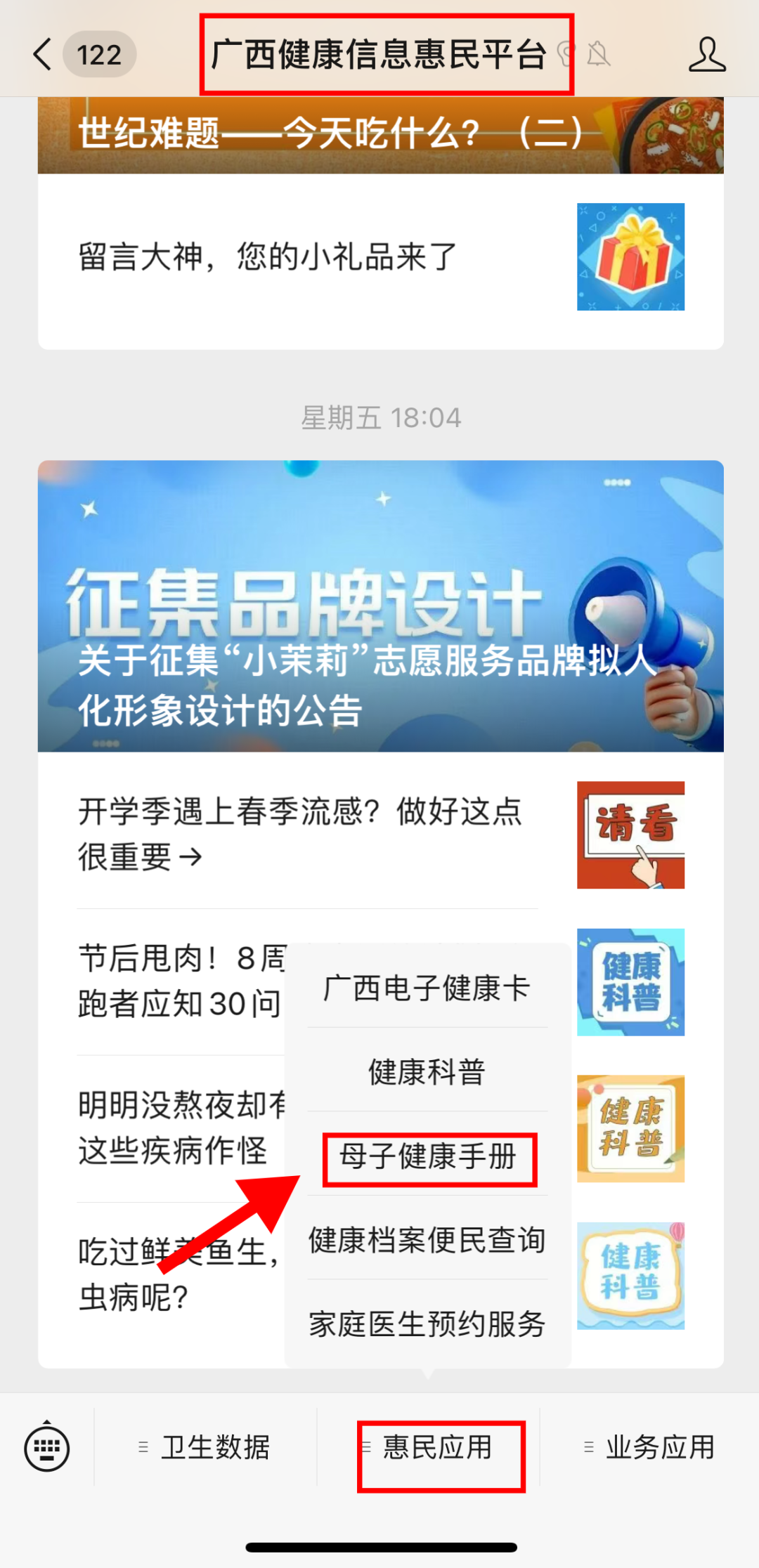 第二步:点击下方“惠民应用”“母子健康手册”