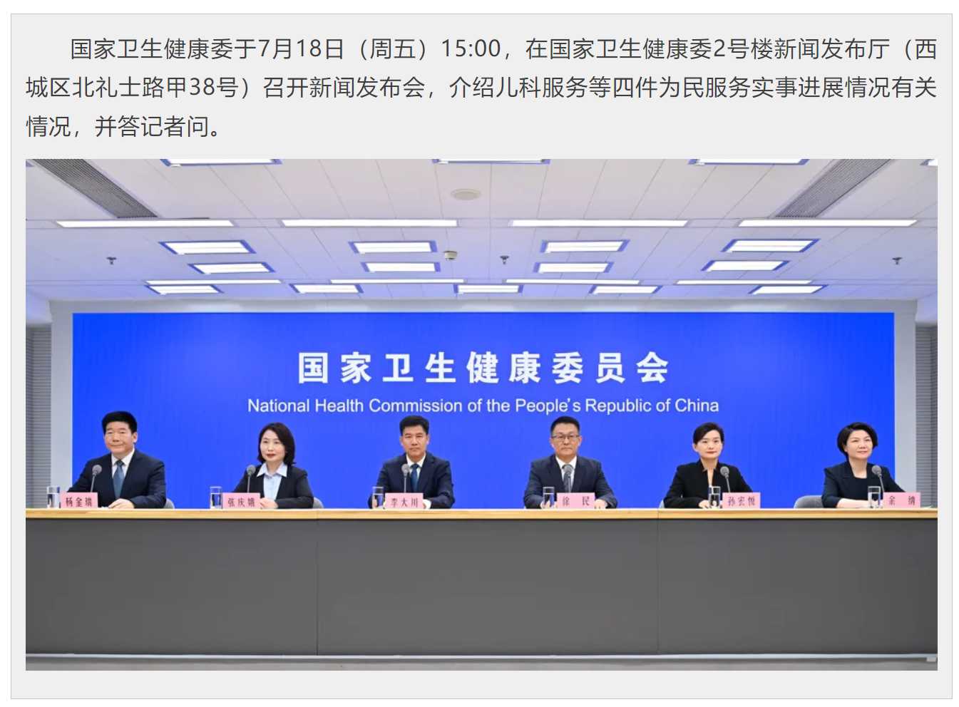 今天的发布会,我们将围绕儿科、精神卫生服务、检验检查结果互认和县域血液透析服务这四件为民服务实事,向大家介绍有关工作的进展情况。