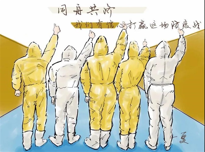漫画插图《同舟共济》,作者方春宁。