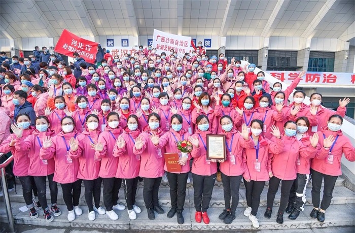 广西援湖北医疗队的出色表现赢得了国家和湖北省各级党委政府的高度肯定,国家卫生健康委、人力资源社会保障部、国家中医药管理局授予广西国家紧急医学救援队和广西护理队(方舱)“全国卫生健康系统新冠肺炎疫情防控工作先进集体”称号。