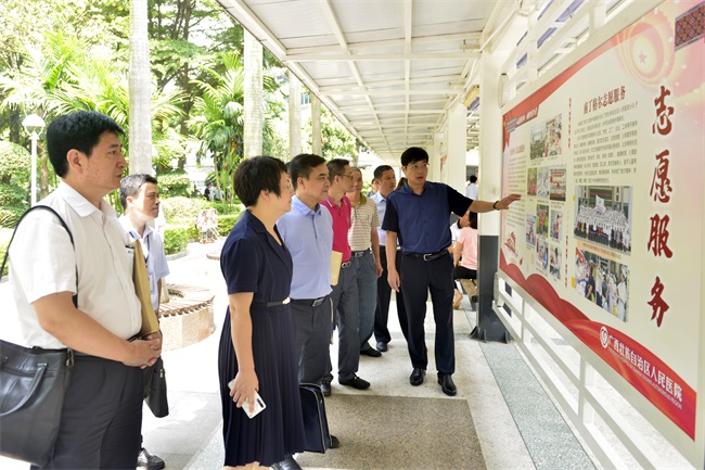 参观自治区人民医院党建文化宣传长廊。