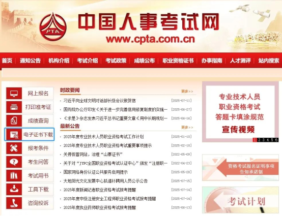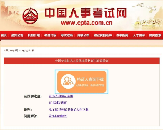 1.登录中国人事考试网,点击进入“电子证书下载”栏目。