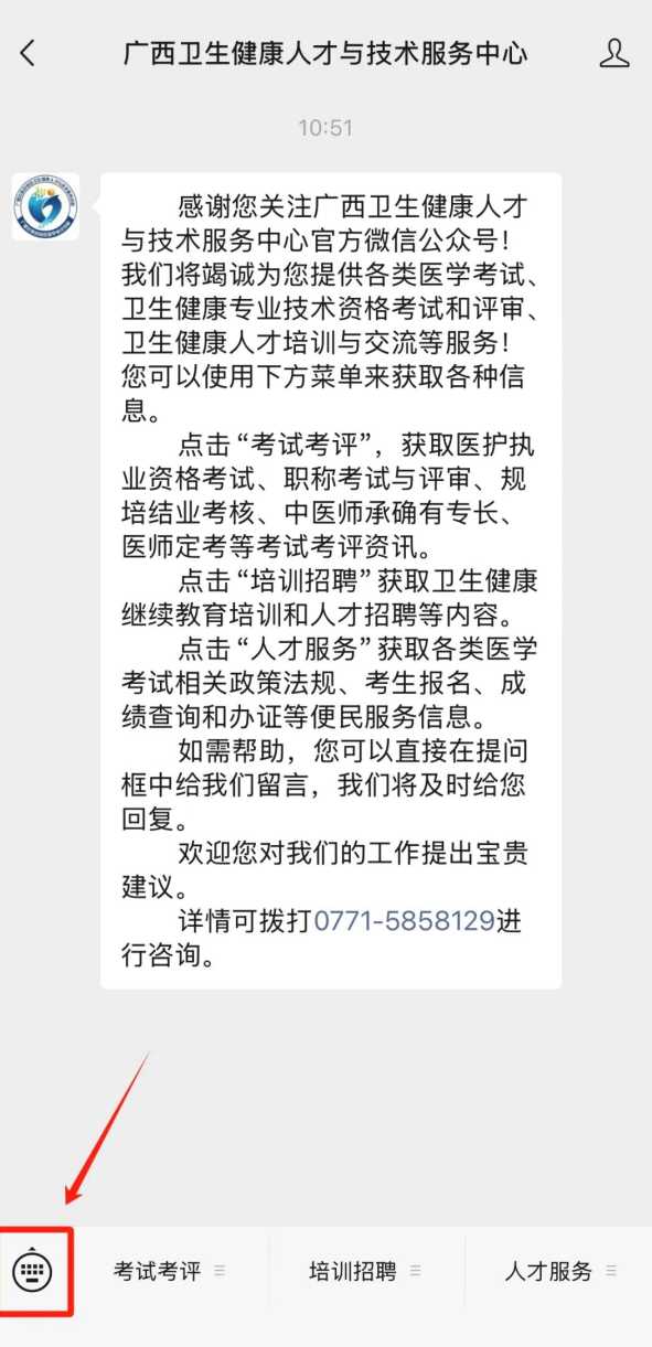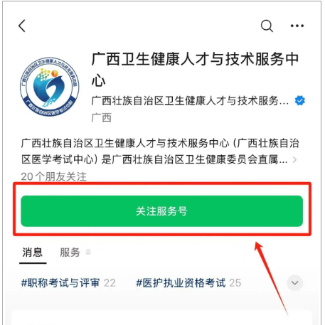 1. 搜索或扫码关注“广西卫生健康人才与技术服务中心”微信公众号。
