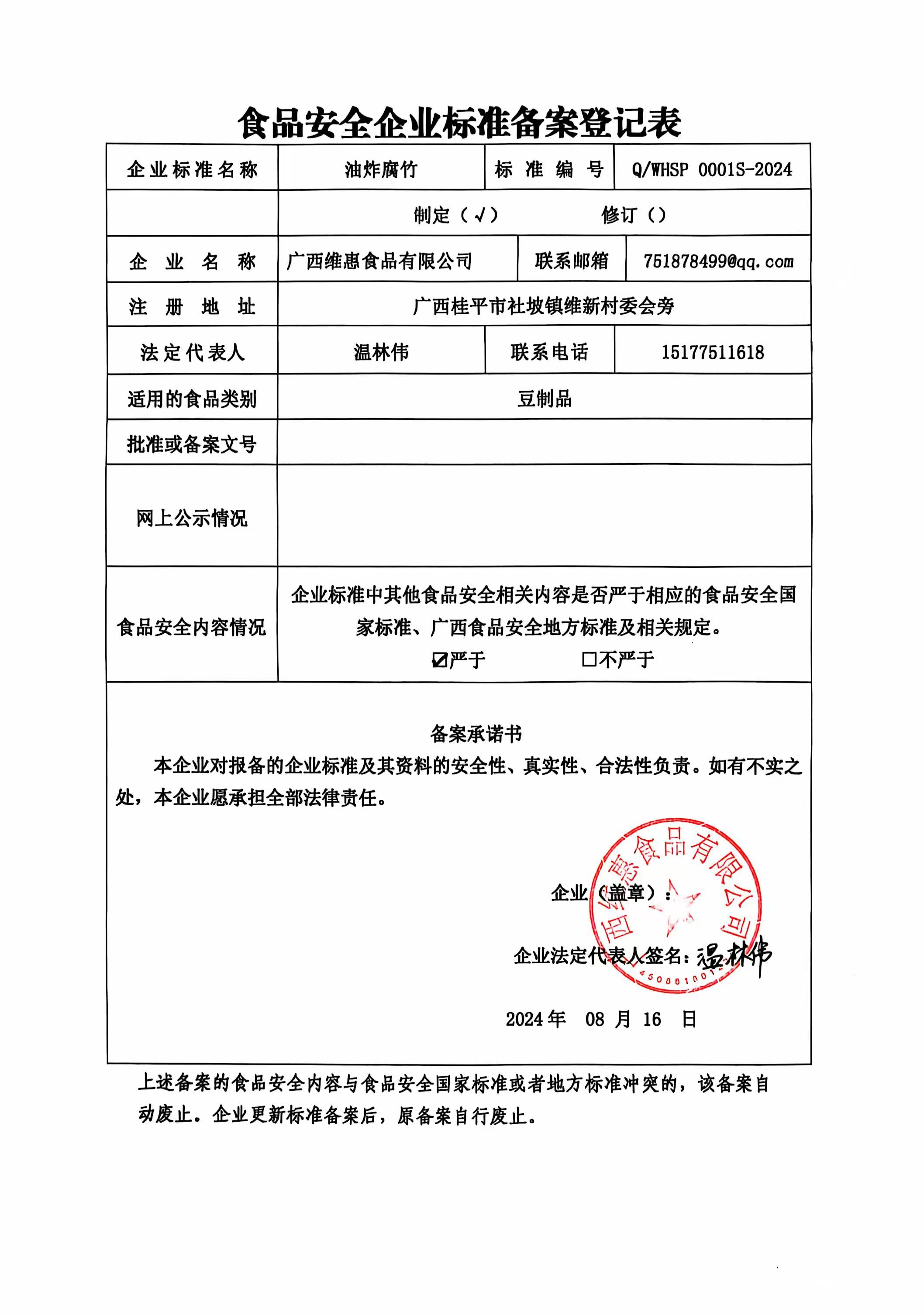 根据《广西食品安全企业标准备案管理办法》有关规定,现将该食品安全企业标准进行备案前公示,公示时间不少于5个工作日。对该企业标准有异议的,可按备案登记表电话联系企业或将意见或建议发送至企业邮箱,并同时抄送至邮箱gxspaqqybz@163.com。企业应当及时根据反馈意见或建议进行研究。