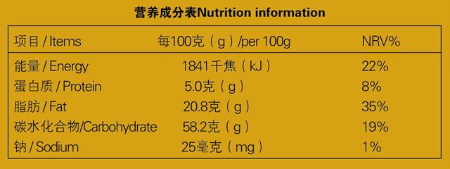 我国从2013年1月1日起,要求在预包装食品标签上强制标示能量和四种营养成分(“1+4”)含量值及其占营养素参考值(NRV)百分比,“1”是指能量,“4”是指核心营养素,即蛋白质、脂肪、碳水化合物、钠。其中营养素参考值很重要,它可以帮助我们判断营养成分的高低。例如上面这个产品中蛋白质含量占的NRV的比值是8%,对消费者来说摄入100g产品,提供的蛋白质大概满足全天需要蛋白质量的8%,而同时脂肪能够满足35%,那么想想,这个产品的脂肪含量相对要高得多了!