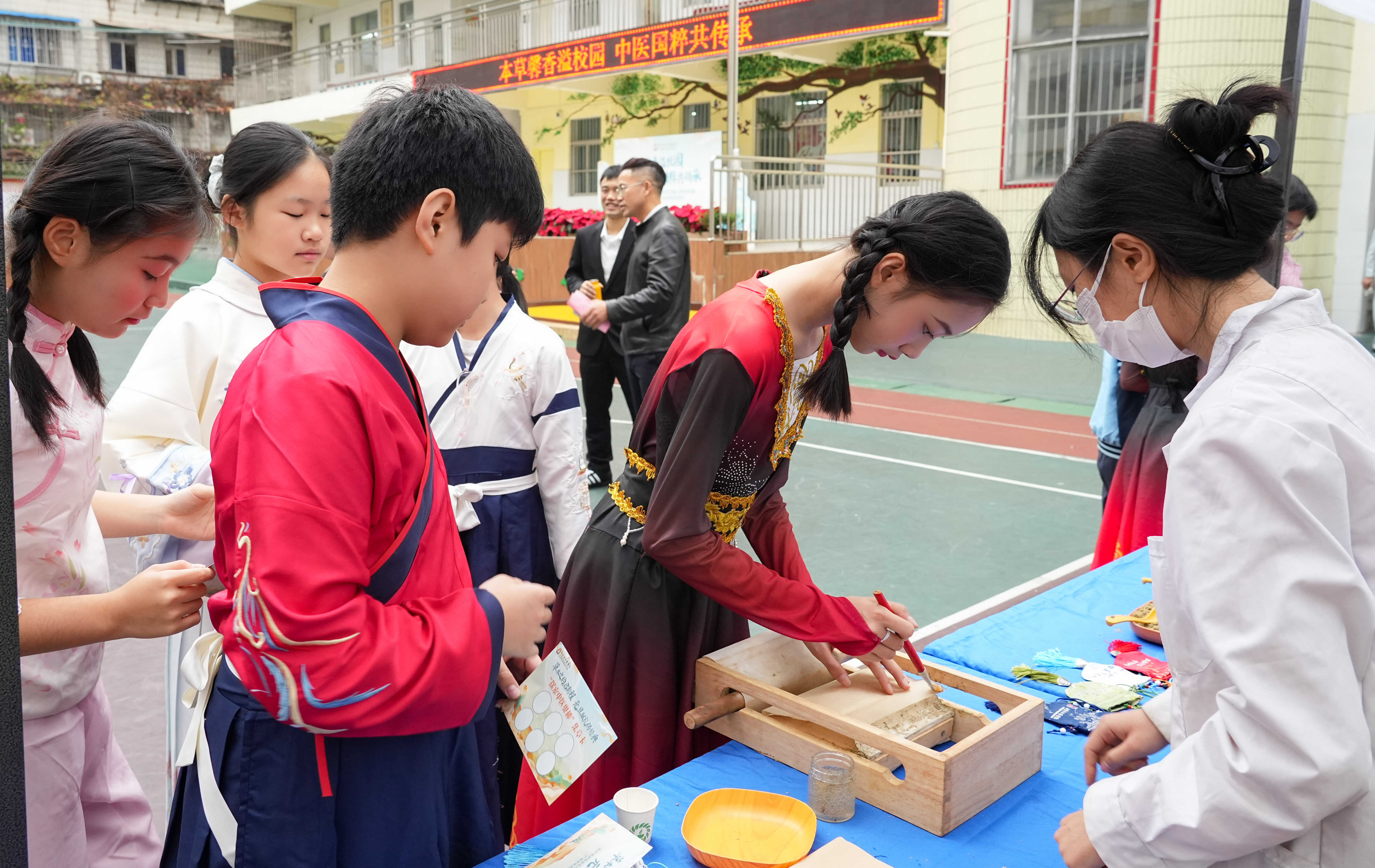 活动以“本草馨香溢校园,中医国粹共传承”为主题,设置了主题班会与操场体验两大主阵地。