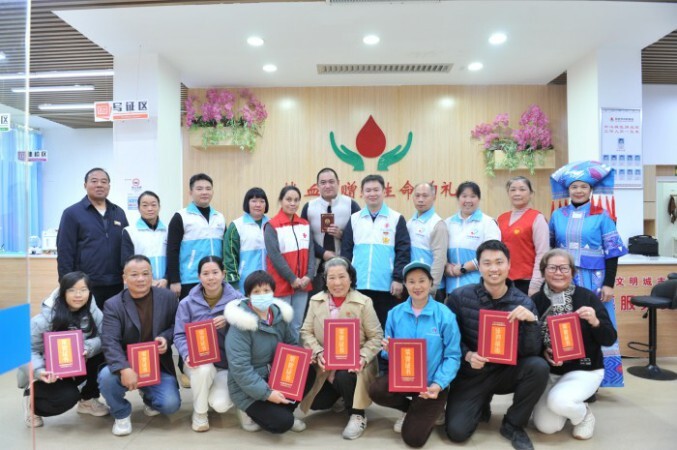 近日,百色市中心血站在中心城区捐血屋为当地荣获2022—2023年度全国无偿献血志愿服务奖获得者颁发证书,一众志愿者接过荣誉证书,这些证书见证着他们数百乃至上千小时的志愿服务坚守。