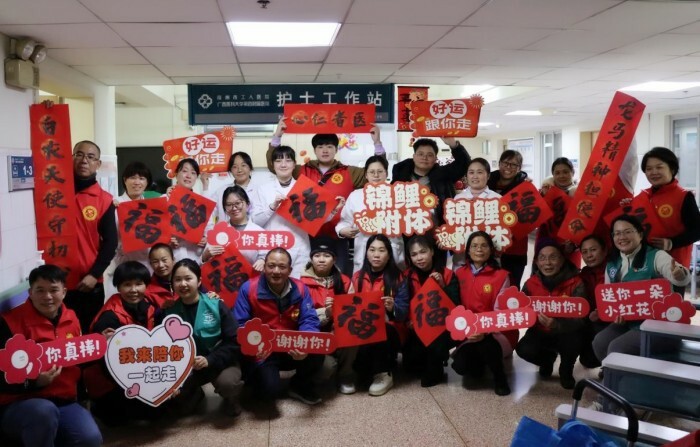 项目成效显著,累计惠及病友45人次。一位乳腺癌患者在社工支持下发起成立“健康小组”,实现从受助者到助人者转变,同时,柳州市工人医院志愿者闭环管理机制逐步形成,两支志愿服务队培育稳步推进,将持续推动受助—互助—助人的爱心循环传递,让医疗服务既有专业厚度,更有人文温度。
