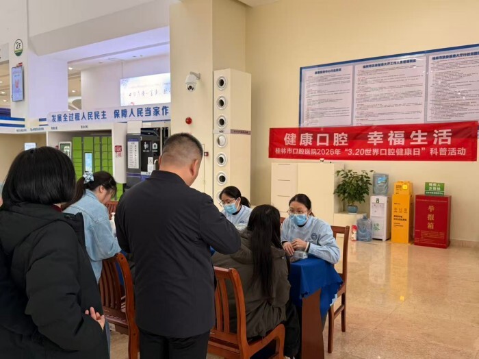 为迎接“3·20世界口腔健康日”,3月20日上午,桂林市口腔医院联合桂林市大数据和行政审批局,以“健康口腔 幸福生活”为主题,在政务服务大厅开展了健康科普与义诊活动,将优质医疗服务送到群众身边。