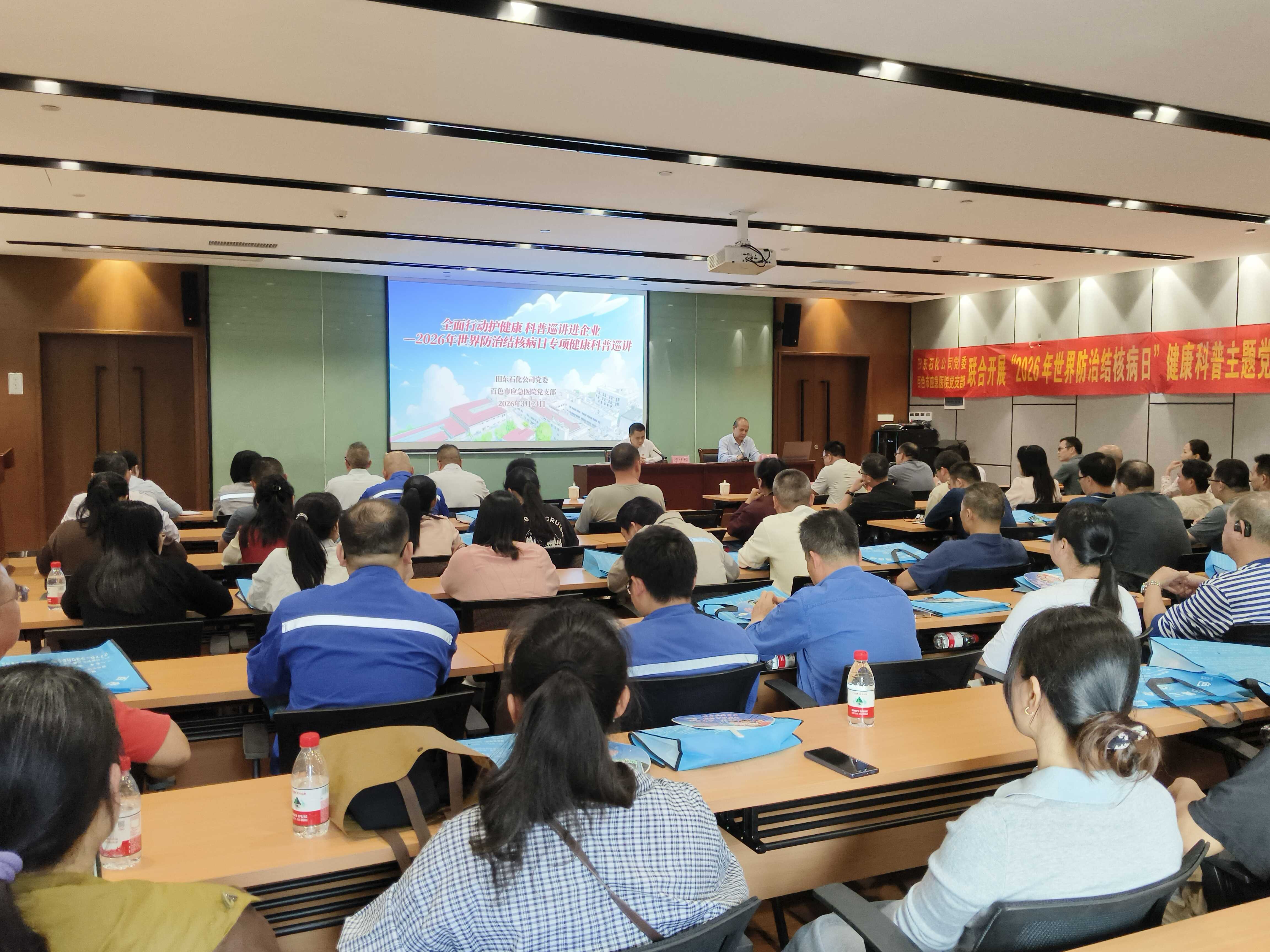 本次活动围绕“全面行动 全力投入 全民参与 终结结核”的世界防治结核病日年度主题,是百色市应急医院落实“健康百色基层行”系列活动、推进健康知识“进企业”的具体举措。作为百色市传染病专科医院,该院组建了由院领导带队,感染、内分泌等多学科专家组成的专业巡讲团队,为田东石化公司的职工带来了针对性的健康科普服务。