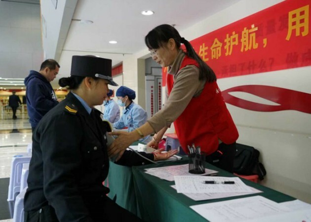 上午9点,干部职工们来到献血登记台前排起队伍,在工作人员的引导下有条不紊地完成信息登记、健康征询、血液初筛等流程,检查合格后到采血车进行静脉采血。