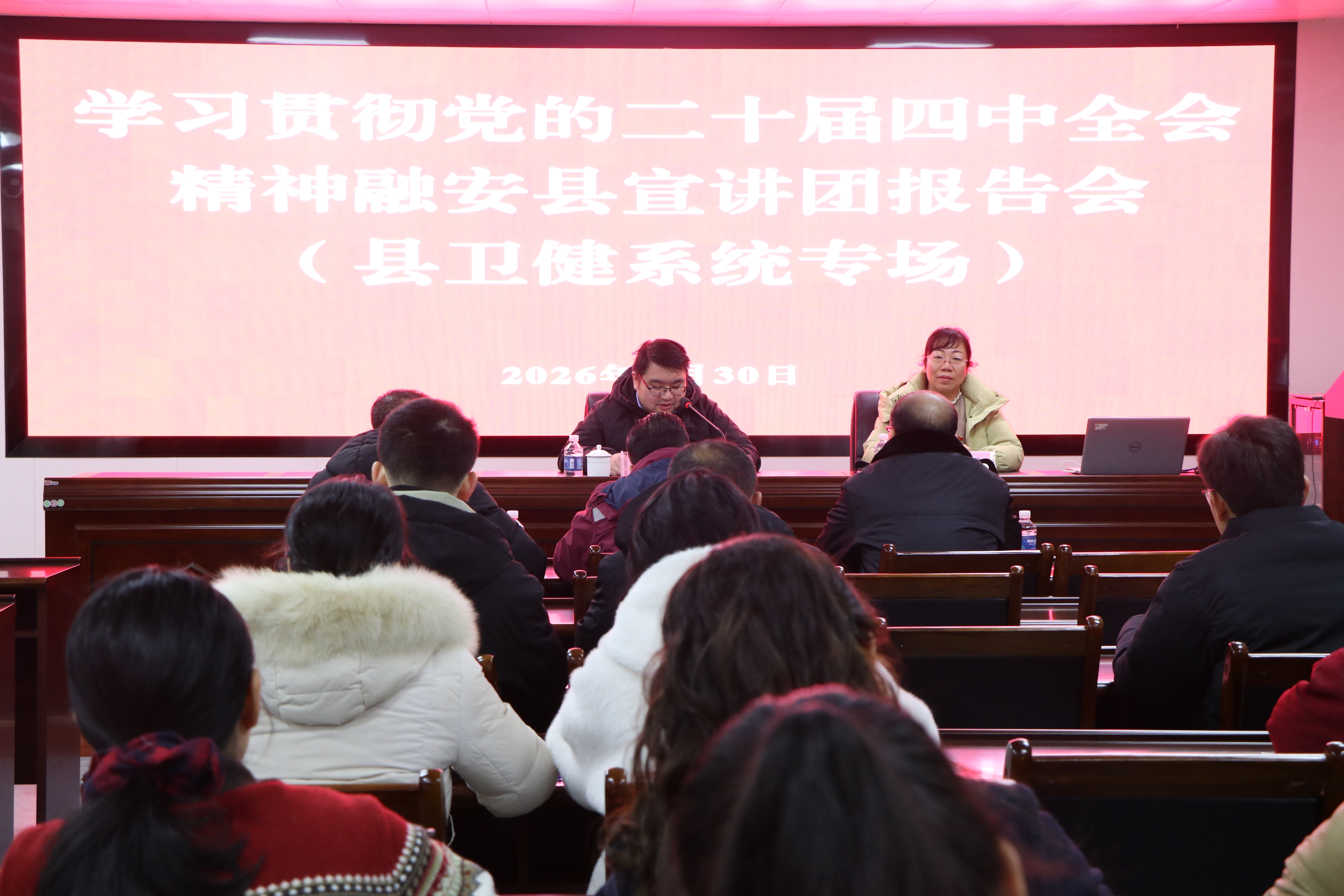 为深入学习贯彻党的二十届四中全会精神,切实将全会精神转化为推动卫生健康事业发展的强大动力。1月30日,融安县卫生健康局召开学习贯彻党的二十届四中全会精神融安县宣讲团报告会(县卫生健康系统专场)。