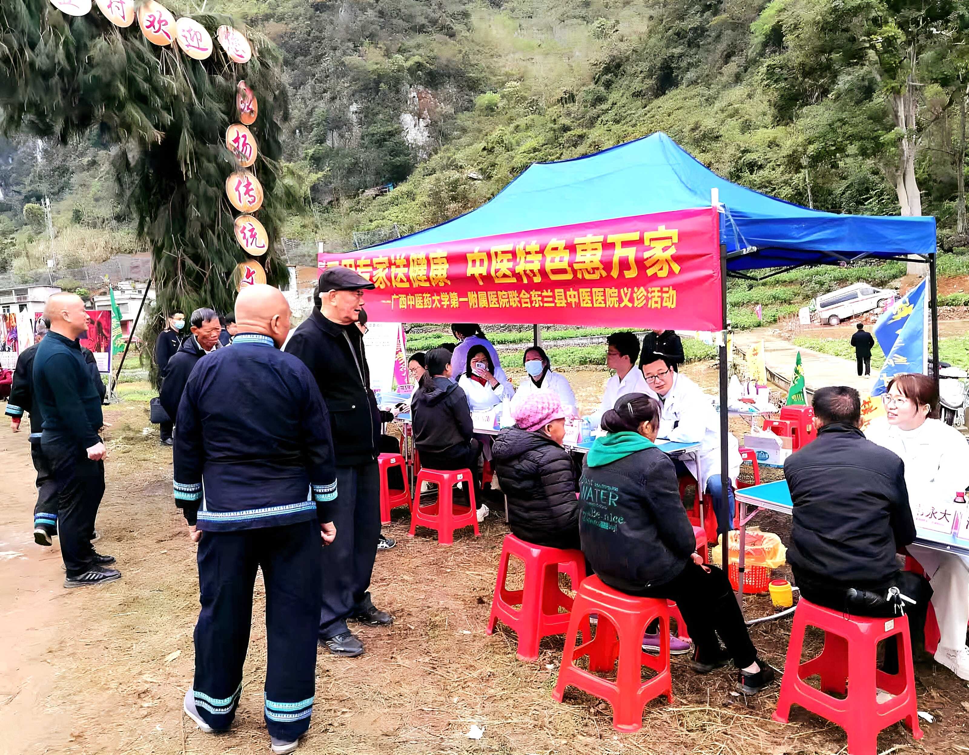 3月20日(农历二月初二),东兰县长乐镇板登村举行一年一度民间传统蚂拐文化节活动。当天,东兰县中医医院联合广西中医药大学第一附属医院组成专家团队,在活动现场开展惠民义诊活动,为热闹的节日增添了一份“健康守护”。