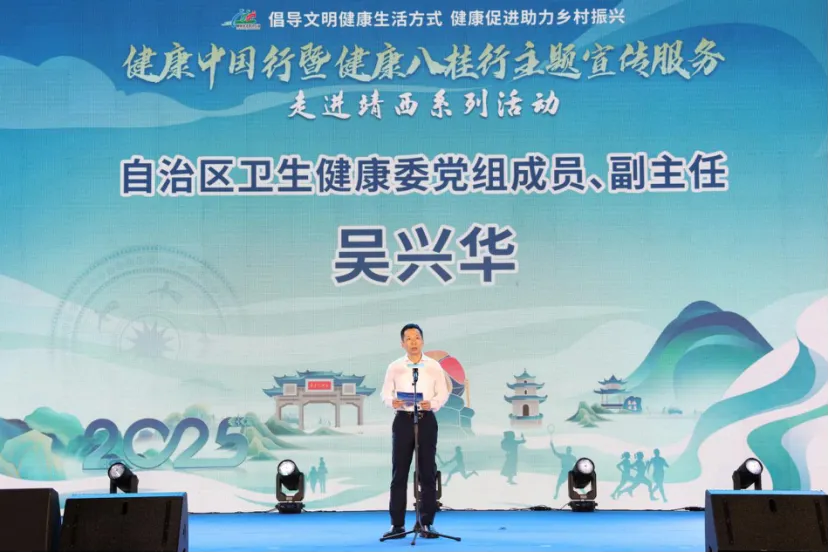 9月24日至25日,2025年健康中国行暨健康八桂行主题宣传服务走进靖西系列活动在靖西市举办。自治区卫生健康委党组成员、副主任吴兴华,百色市人民政府副市长庞春潮出席启动仪式并致辞,靖西市群众代表在启动仪式上发出健康促进倡议。