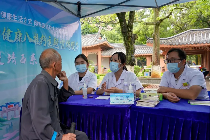 同时,自治区、靖西市的医疗卫生机构专家以及区直卫生健康相关单位在靖西市中山休闲广场、靖西市新靖镇旧州街、开展健康义诊、健康咨询、发放健康素养知识宣传材料等服务,深入新靖镇旧州街5户群众家中进行健康指导,把优质健康服务送到群众身边。
