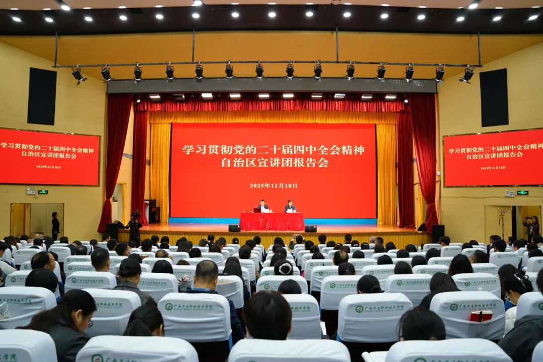 11月18日下午,自治区宣讲团成员,自治区卫生健康委党组书记、主任杜振宗到广西卫生职业技术学院作专题宣讲报告会,全体师生代表聆听精彩宣讲。同时,通过线上直播方式,在自治区卫生健康委机关、各直属单位党组织设立分会场,共计约9000名党员同步收看。报告会由广西卫生职业技术学院党委书记牙韩高主持。