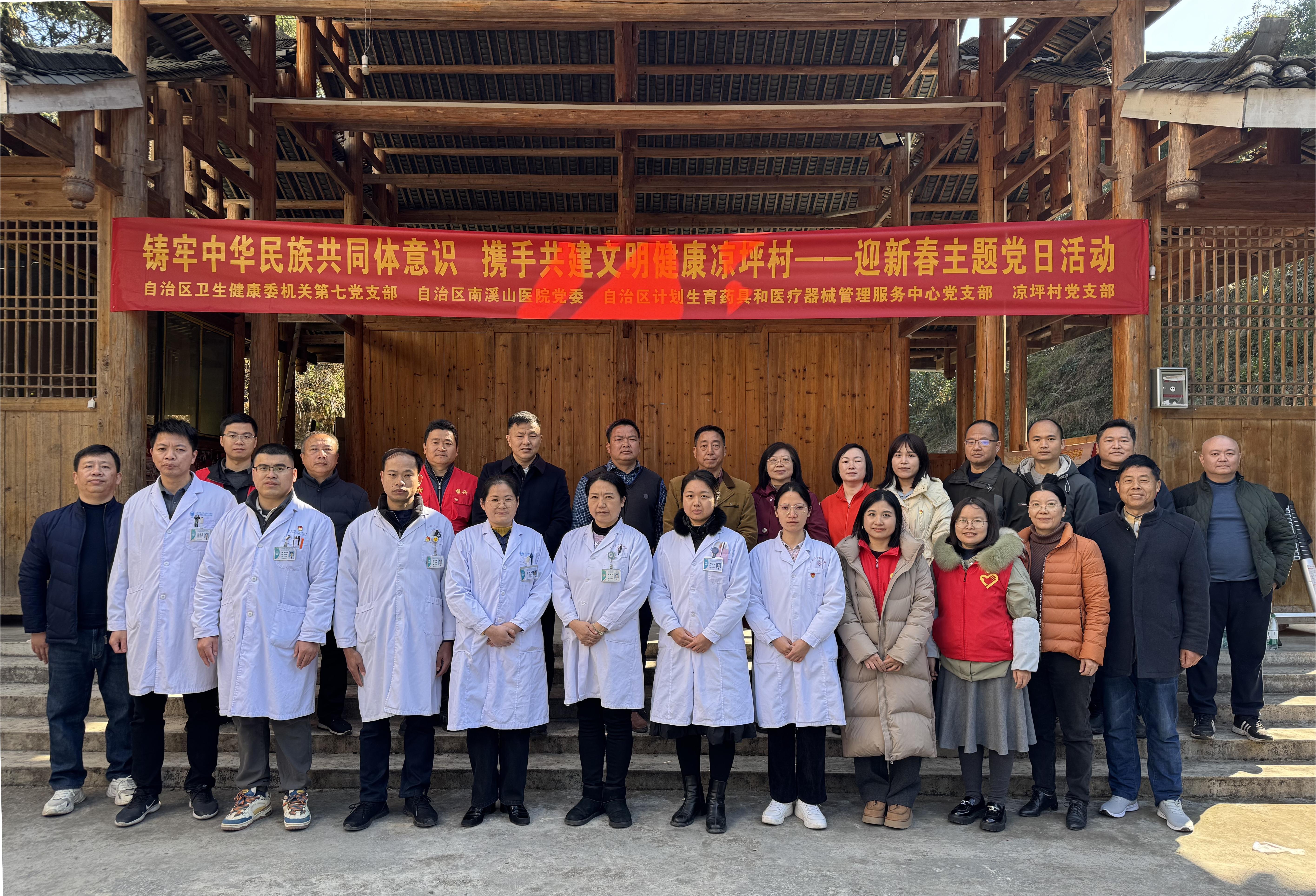 1月14日,自治区卫生健康委机关第七党支部联合自治区计划生育药具和医疗器械管理服务中心党支部、自治区南溪山医院党委赴龙胜各族自治县乐江镇凉坪村开展“铸牢中华民族共同体意识 携手共建文明健康凉坪村”迎新春主题党日活动。