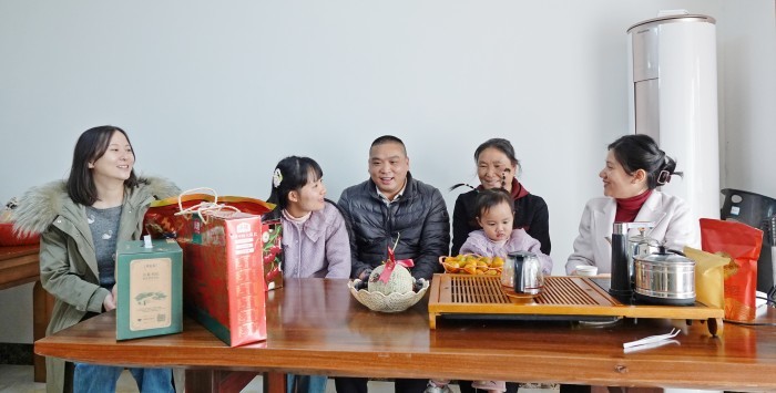 在第一书记家中,覃婷婷与席岳磊及其家属进行了诚挚而温馨的交谈,她高度赞扬了席岳磊在驻村工作中展现出的无私奉献精神,并对家属的理解与默默支持表达了由衷的感谢。随后,她送上满载心意的牛奶、新鲜水果等慰问品。