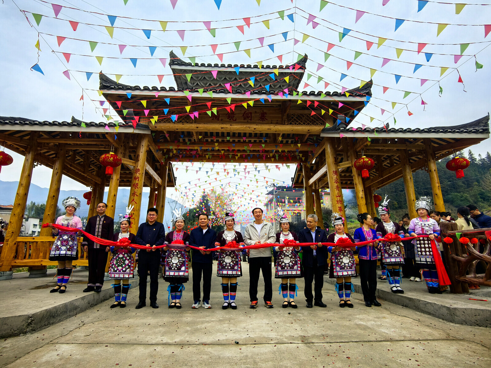 当天,广西药用植物园与中山一院广西医院、自治区妇幼保健院、骨伤医院、中医药研究院等帮扶单位领导及独镜村“两委”共同为寨门启用剪彩。这座融合侗族特色的寨门,不仅是村庄的新地标,更是党建引领下结对帮扶成果的象征,寄托着共同谱写乡村振兴新篇章的美好期许。