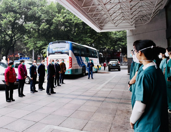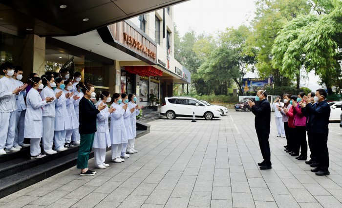 自治区卫生健康委党组书记、主任,自治区桂林市疫情处置联合指挥部常务副指挥长廖品琥率慰问组慰问医务人员代表