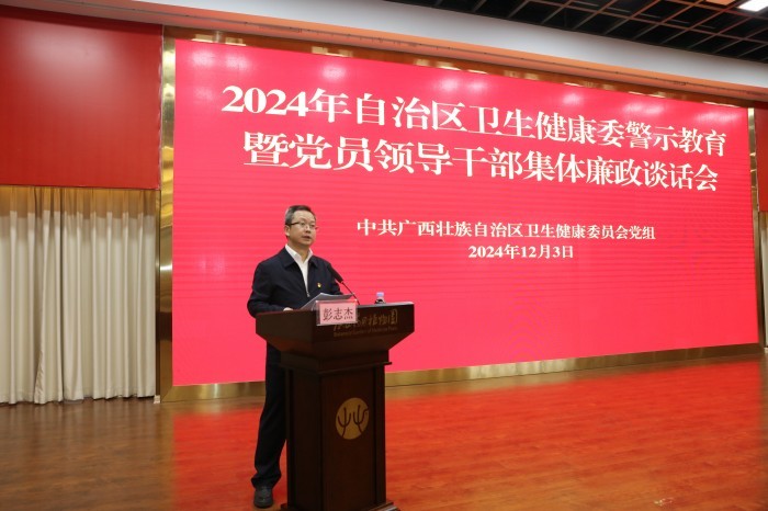 杜振宗指出,当前全区医药领域不正之风和腐败问题仍然突出,形势仍然严峻复杂,党员领导干部要深刻汲取典型案例教训,以案为鉴、以案促改,真正做到受警醒、明底线、知敬畏,不断增强政治定力、纪律定力、道德定力、拒腐定力。要以“时时放心不下”的责任感,坚定不移推进全面从严治党,持续深化正风肃纪反腐,为推动全区卫生健康事业高质量发展提供坚强纪律保障和作风保障。