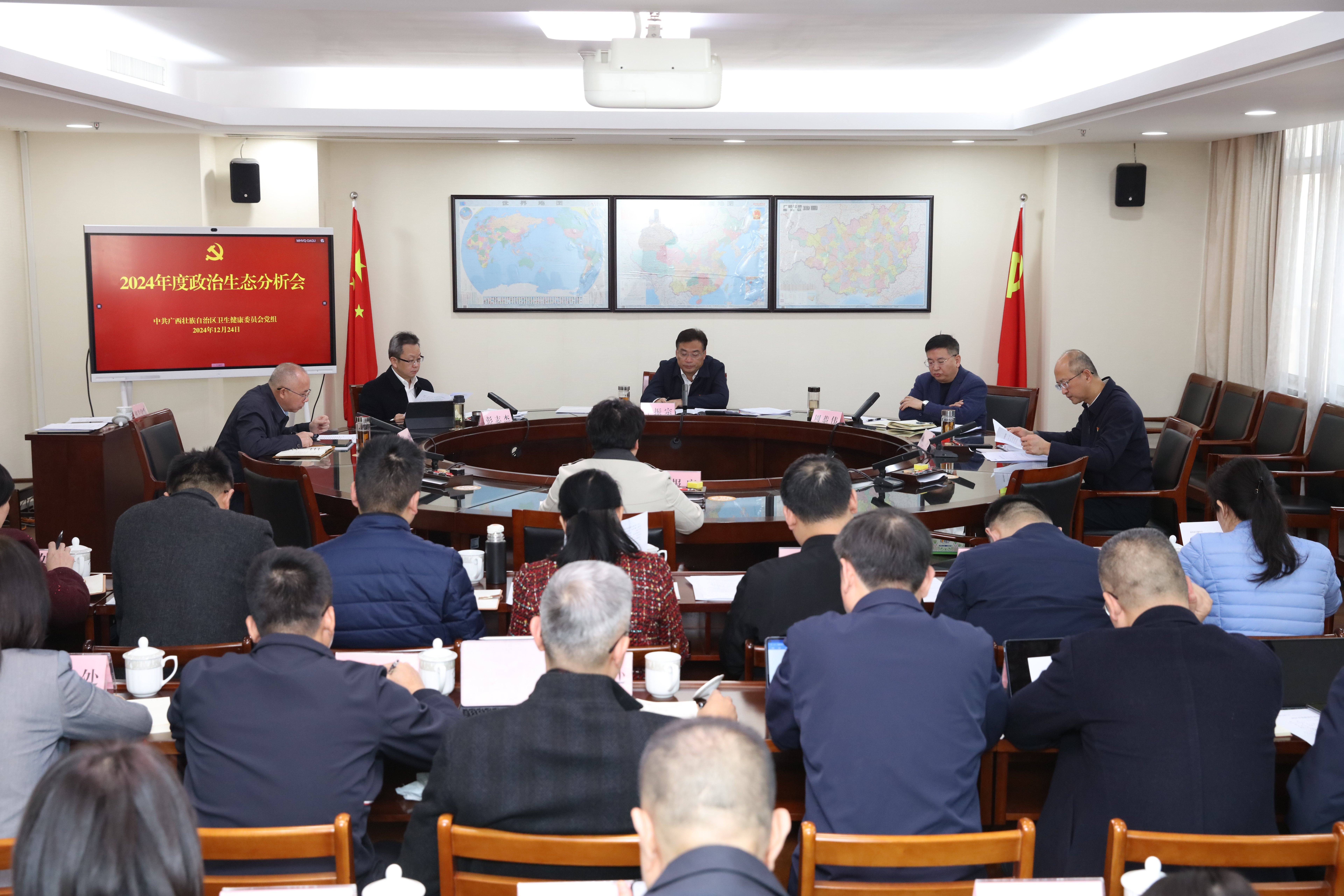 12月22日,自治区卫生健康委党组召开2024年政治生态分析研判会。会议通报自治区卫生健康委党组2024年政治生态建设现状并部署下一步工作。自治区卫生健康委党组书记、主任杜振宗主持会议并讲话。