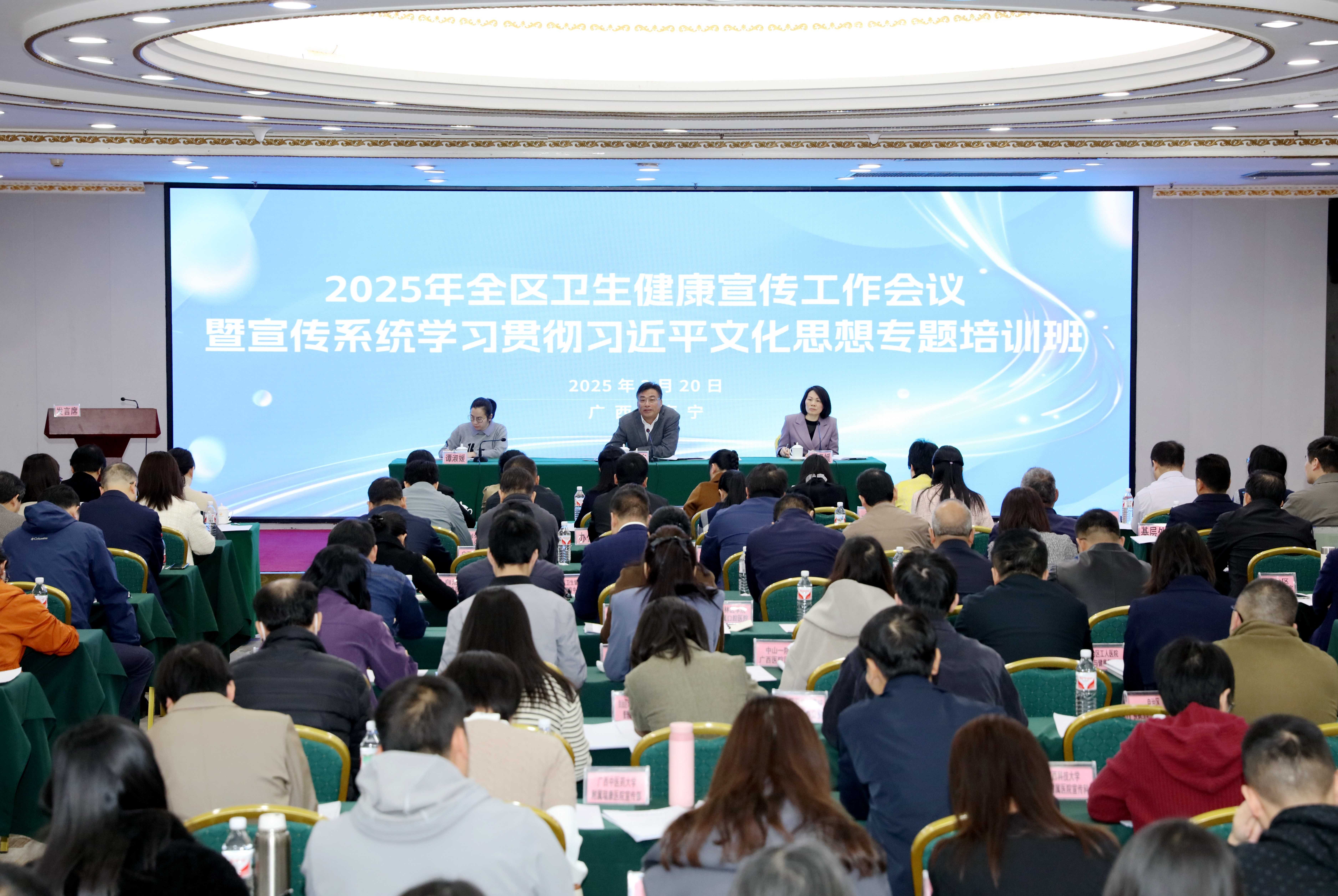 3月20日至21日,2025年全区卫生健康宣传工作会议暨宣传系统学习贯彻习近平文化思想专题培训班在南宁召开。会议传达2025年全国卫生健康宣传思想文化工作会议精神,总结2024年全区卫生健康宣传工作,分析当前宣传工作新形势新任务,部署2025年卫生健康宣传重点工作。自治区卫生健康委党组书记、主任杜振宗出席会议并讲话。