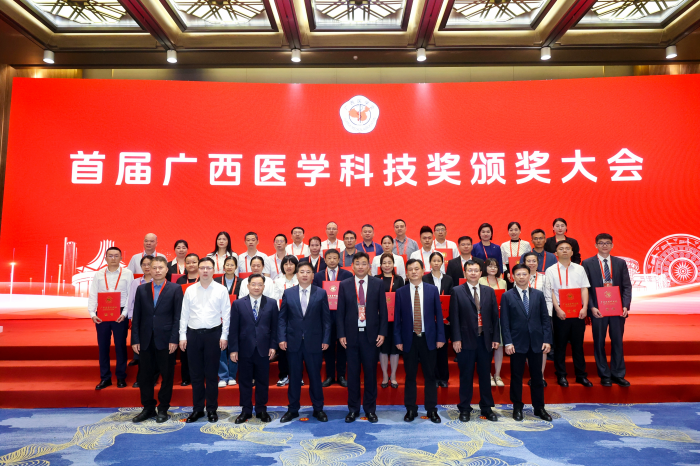 2025年4月12日,首届广西医学科技奖颁奖大会在南宁召开。自治区卫生健康委党组书记、主任,广西医学会会长杜振宗,自治区科协党组成员、副主席王鸿鹄,自治区卫生健康委党组成员、副主任周恭伟,广西医科大学副校长、广西医学会副会长卢德成,广西医科大学第二附属医院党委书记、广西医学会副会长罗杰峰等出席会议并为获奖者颁奖,右江民族医学院党委书记、广西医学会副会长李雪斌主持会议。