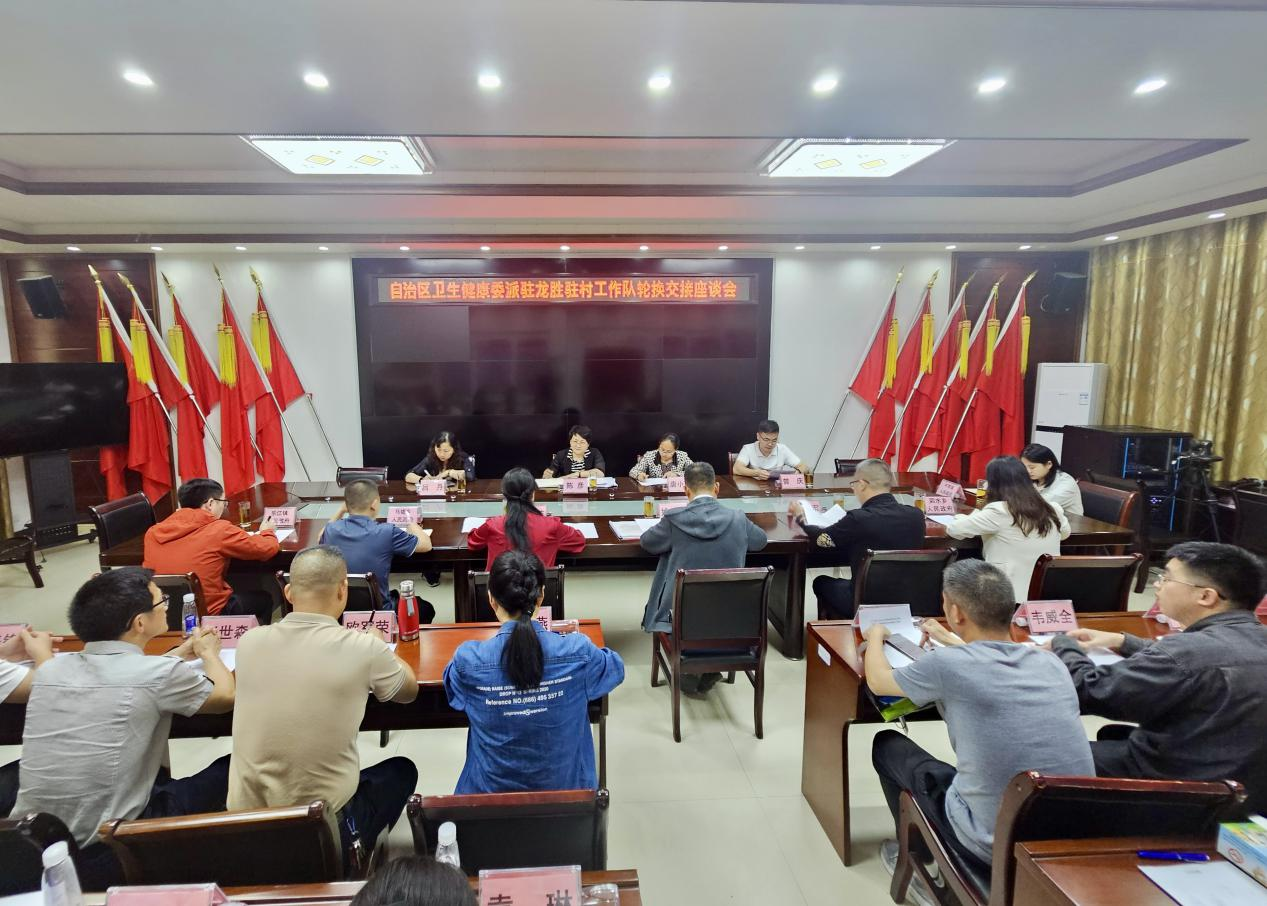 自治区卫生健康委人事处、机关党委相关同志,龙胜县领导、驻村工作队队长,龙胜县委组织部、龙胜县卫生健康局等相关部门领导,乐江镇、平等镇、马堤乡和泗水乡等乡镇领导,自治区卫生健康委派驻龙胜县现任驻村工作队全体人员、新一批驻村第一书记参加座谈会。