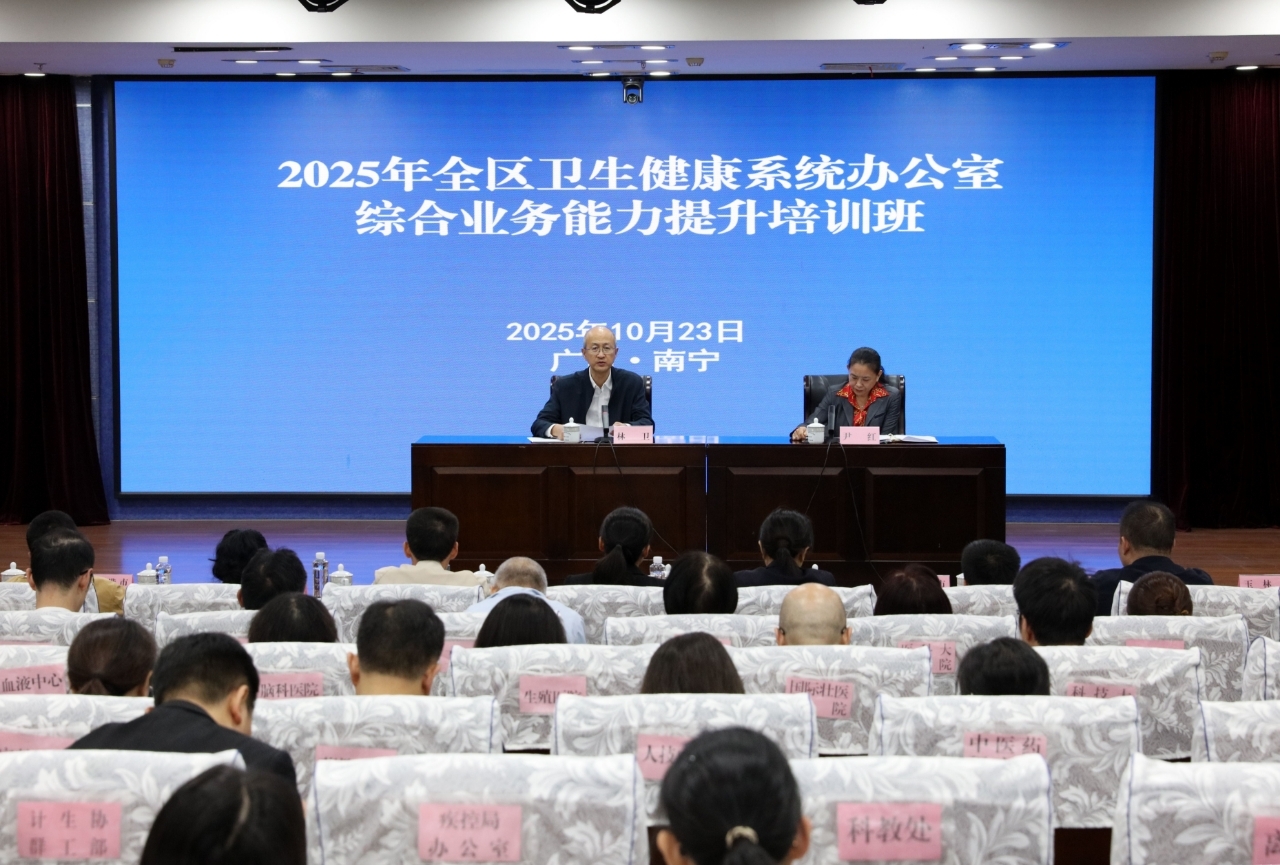 10月23日—24日,2025年全区卫生健康系统办公室综合业务能力提升培训班在南宁成功举办。自治区卫生健康委党组成员、副主任,自治区疾控局党组书记、局长林卫出席开班仪式并讲话。
