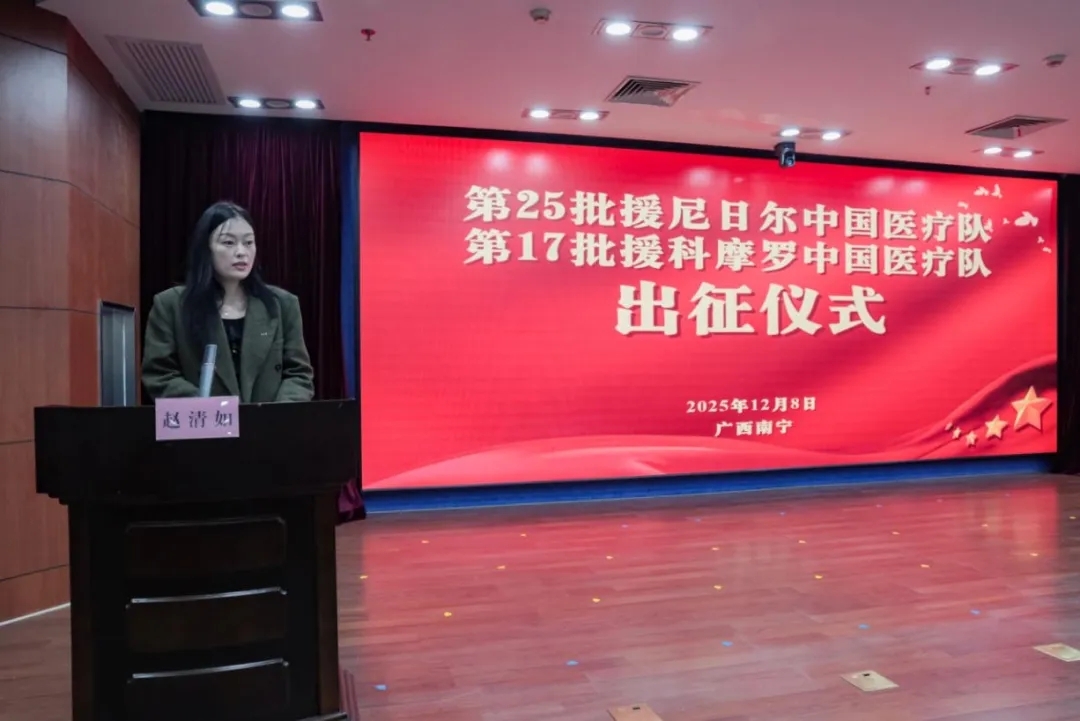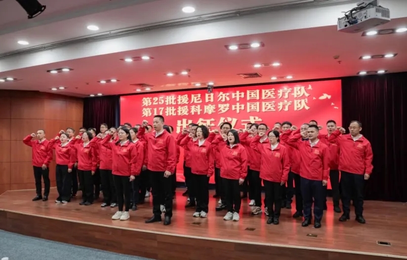 第25批援尼日尔、第17批援科摩罗中国医疗队分别由广西医科大学、钦州市卫生健康委整建制承派。此次派出的2支医疗队由41名队员组成,分别来自广西医科大学附属三级医院和钦州市属三级医院。出征仪式后,队员们将远赴非洲执行为期一年半的援外医疗任务。