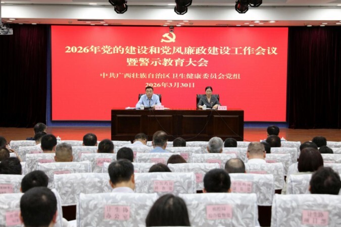 3月30日,自治区卫生健康委党组在南宁召开2026年党的建设和党风廉政建设工作会议暨警示教育大会。会议全面贯彻落实党的二十届中央纪委五次全会、自治区纪委十二届六次全会部署要求,总结回顾2025年工作,部署2026年任务。自治区卫生健康委党组书记、主任杜振宗出席会议并讲话,自治区卫生健康委党组成员、驻委纪检监察组组长唐文红主持会议。