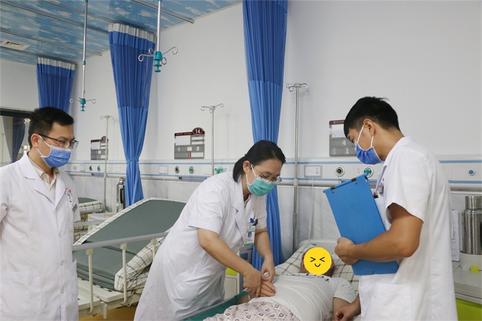 广西中医药大学第一附属医院梁妮主任医师在百色市中医医院进行带教查房示范。