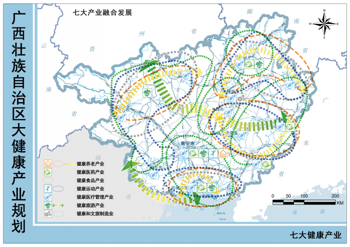 桂林市——以建设世界级旅游城市为目标,加快创建国家全域旅游示范区、国家级旅游休闲城市、全国文旅融合高质量发展典范、国家级健康旅游示范基地,整合独秀峰王城(靖江王府)山水历史文化景观、阳朔山水休闲度假、兴安灵渠历史文化景观、龙脊梯田人文景观、长征文化资源等特色旅游资源以及独特的养生长寿资源,构建“四区一带一中心”的文化旅游发展格局。持续推进桂林国际智慧健康旅游产业园建设,壮大养生养老、医疗护理、健康保健、教育培训、科研开发、生态旅游等业态。在桂林高新技术开发区(七星园)、桂林经济技术开发区、粤桂黔高铁经济带合作试验区等,大力发展中医药、壮瑶医药产业,做精做细生物药和化学药产业链;加快发展高性能诊疗设备、康复医疗设备、高端医疗耗材及防护医疗器械等产业,推进桂林医疗器械产业园建设。推进“三木”药材、罗汉果、金银花等道地药材规模化、标准化种植和加工,重点发展食用菌、竹木、油茶、水产等特色农产品,支持发展生态饮品、旅游休闲食品、果蔬食品等,打造现代农业生产基地。围绕绿色生态运动主题,大力发展健身休闲、山地户外、民族体育等运动产业,打造体育与旅游高度融合的新兴业态。 贺州市——加快建设广西东融先行示范区,创建国家全域旅游示范区、国家医养结合试点市。积极探索大健康产业发展新途径,加快形成以健康医疗、健康养老、健康旅游产业为核心,辐射带动健康医药、健康食品和健康运动产业联动发展的大健康产业体系,打响“梦境黄姚·长寿贺州”品牌。按照“一核、四小镇、五片区”的空间布局,依托全国“全域长寿市”品牌,以融合发展为手段,以满足老年人的养生养老需求为目标,全面推进康养产业发展,力争把贺州建设成为全国休闲旅游养生养老产业示范区和世界长寿健康养生基地。依托黄姚、姑婆山、南乡西溪温泉等景区景点资源发展文旅+康养产业;依托贺州悠久历史的大湾区“菜篮子”“果篮子”基地和现代农业发展健康食品产业;依托马拉松越野比赛和足球小镇基地发展健康运动产业。发挥贺州建设广西东融先行示范区政策优势,依托八步区森林仙草现代林业核心示范区、八步临贺淮山产业示范区、昭平县富罗单竹中药材产业(核心)示范区、富川华润三九(南药)产业示范区等现代特色中药材产业示范区,充分挖掘瑶族药浴文化、饮食文化等特色资源,兴建具有一定规模的药用植物种植园、养生保健植物种植基地,以及具有瑶族地方特色的绿色药膳餐厅、理疗康复中心。加快发展健康医疗制造业,在贺州生态产业园(高新区)、昭平工业集中区和钟山工业区,重点开发生物疫苗、中医药、医疗器械等产品,打造广西健康医药产业基地。在姑婆山产业区和贺州生态产业园,重点发展无人机载人交通、场景应用、装备制造及空中新媒体、无人机总装生产,打造广西无人机产业高地。 |