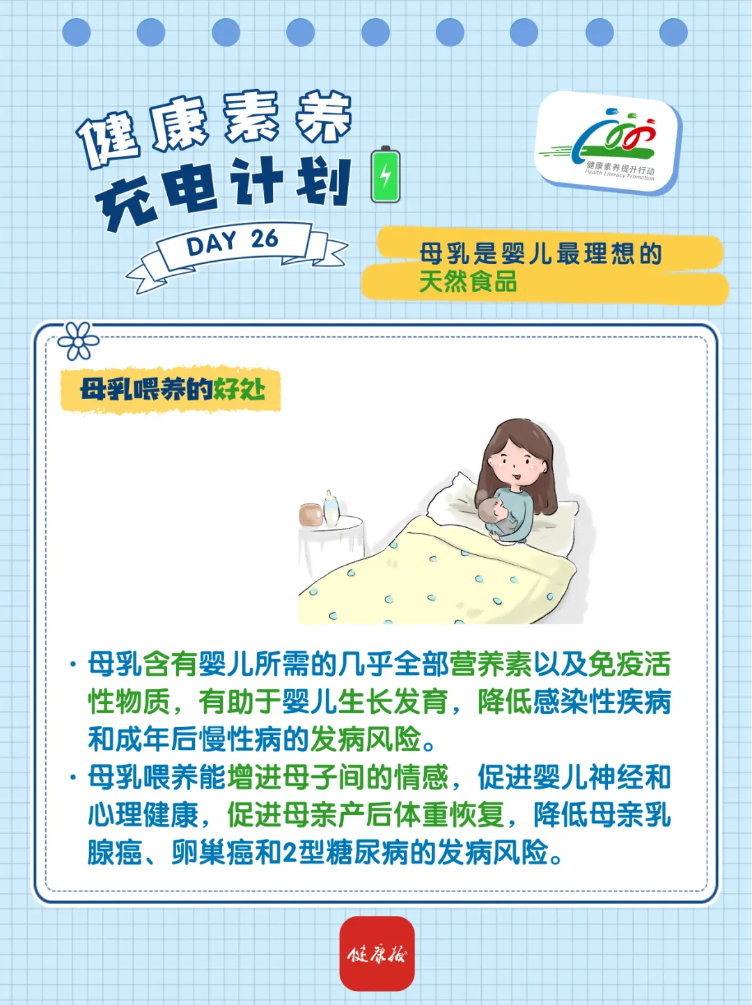为倡导文明健康生活方式,提升居民健康素养水平,“健康八桂”微信公众号聚焦《中国公民健康素养——基本知识与技能(2024年版)》(简称“健康素养66条”)开展健康知识普及。本期内容为:孩子出生后如何正确喂养?