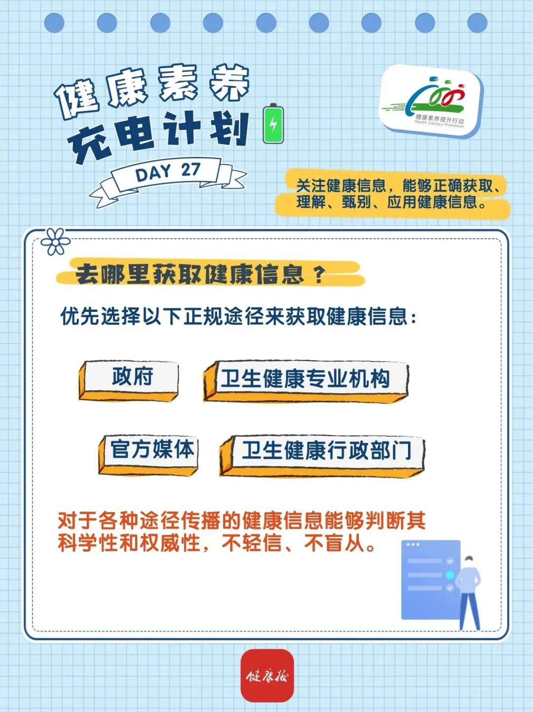 关注健康信息,能够正确获取、理解、甄别、应用健康信息。