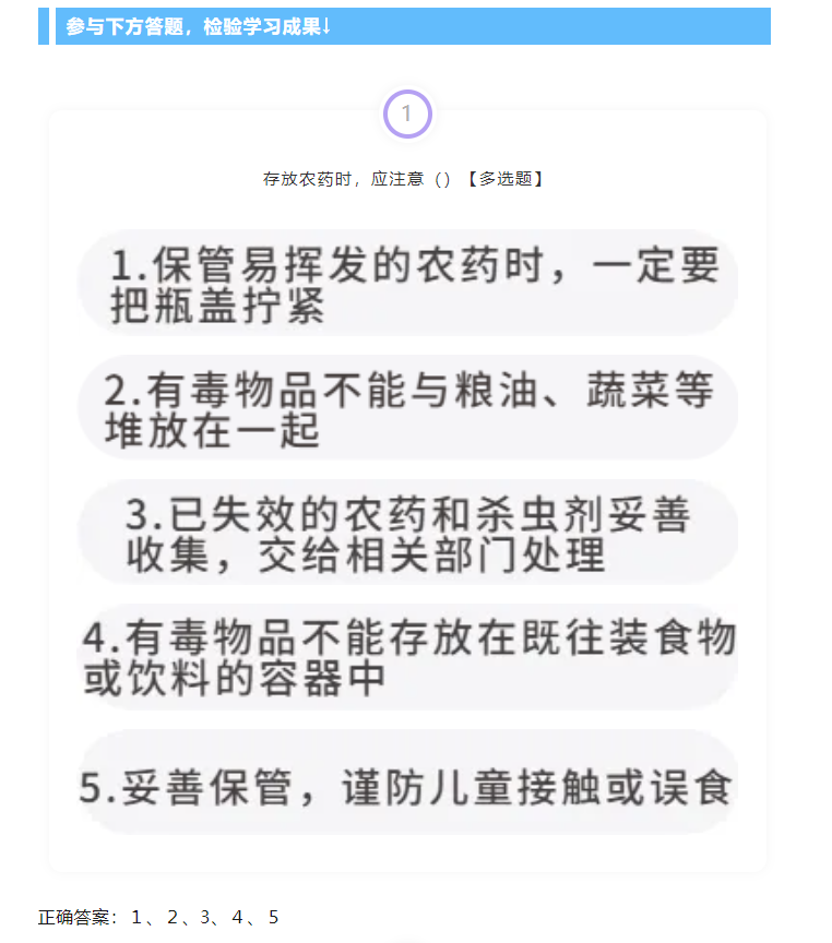 为倡导文明健康生活方式,提升居民健康素养水平,“健康八桂”微信公众号聚焦《中国公民健康素养——基本知识与技能(2024年版)》(简称“健康素养66条”)开展健康知识普及。本期内容为:如何妥善存放和正确使用农药?