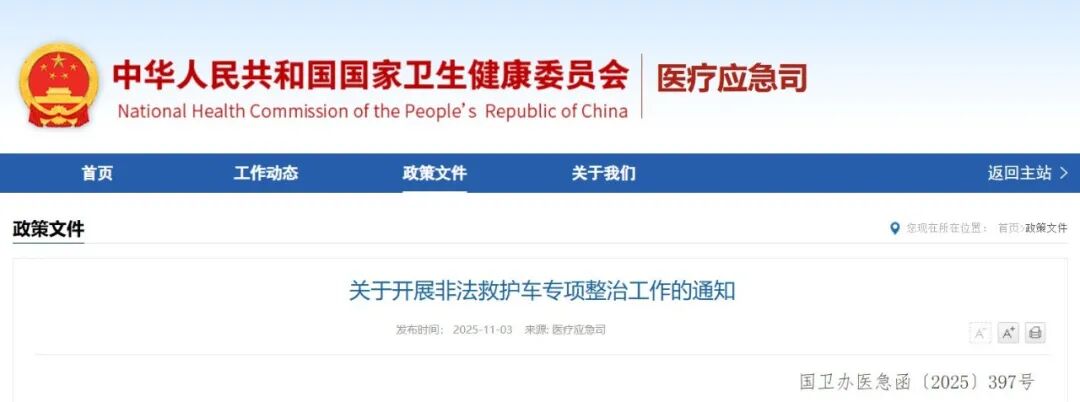 | 发文字号:国卫办医急函(2025)397号 | 发布日期:2025年11月03日 |